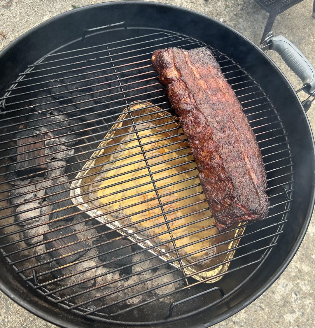 First attempt at using snake method on 22” kettle, decided to go with ribs. Very pleased with results for a first time. Looking to tackle pork butt next!