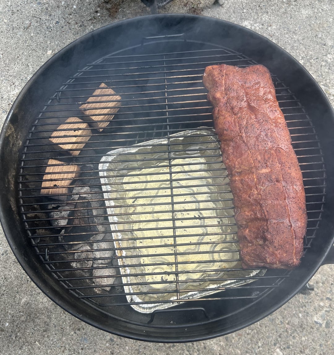 Looks very good. How long did you let it cook for? The snake method is so easy. I forgot the water pan last time oops!