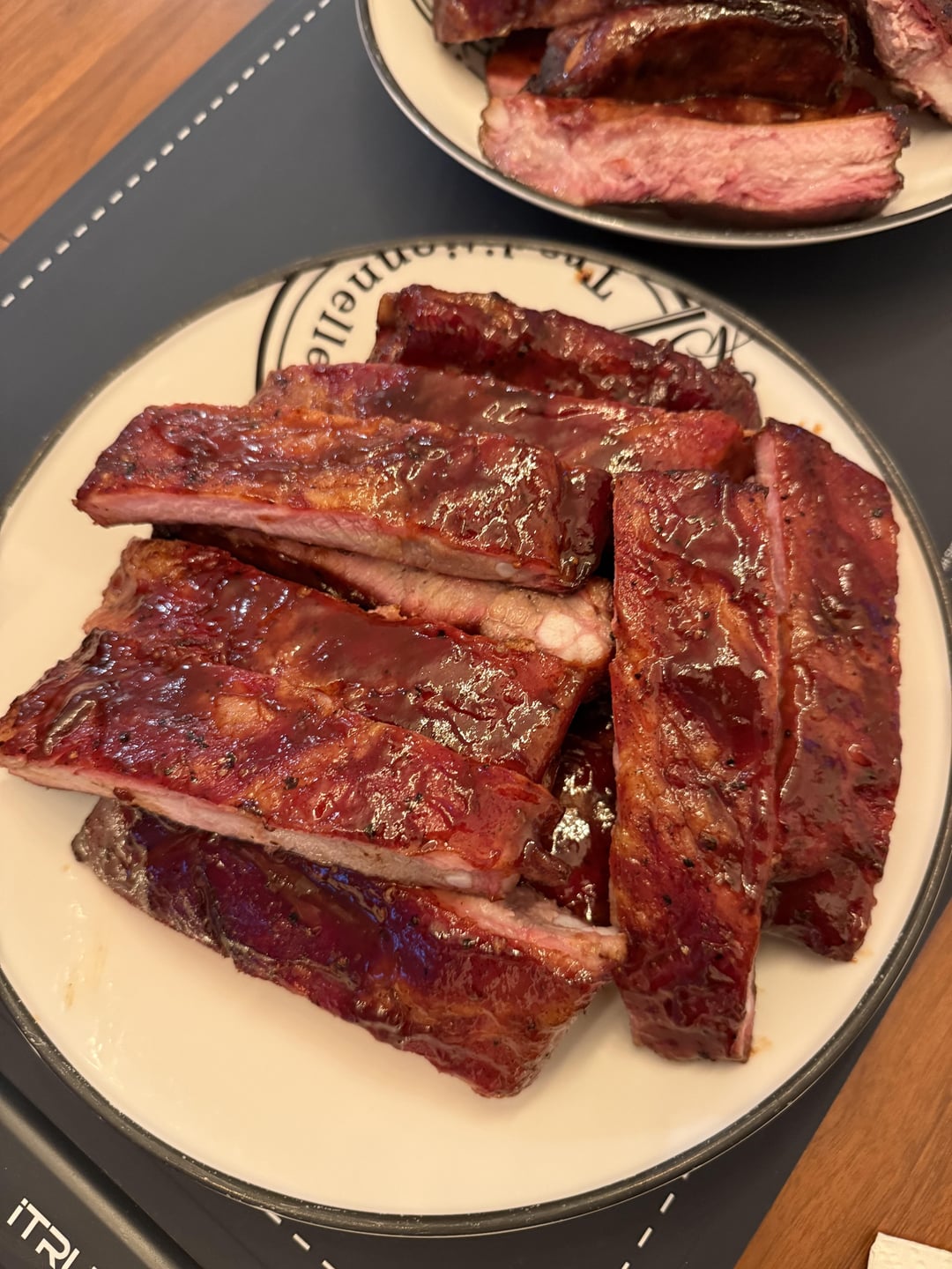 Went a little crazy with the seasoning the first time and although they looked good were too salty to enjoy. The second time I learned from my mistakes and used a single rub (meat church honey) for the first and a char sui glaze for the other.