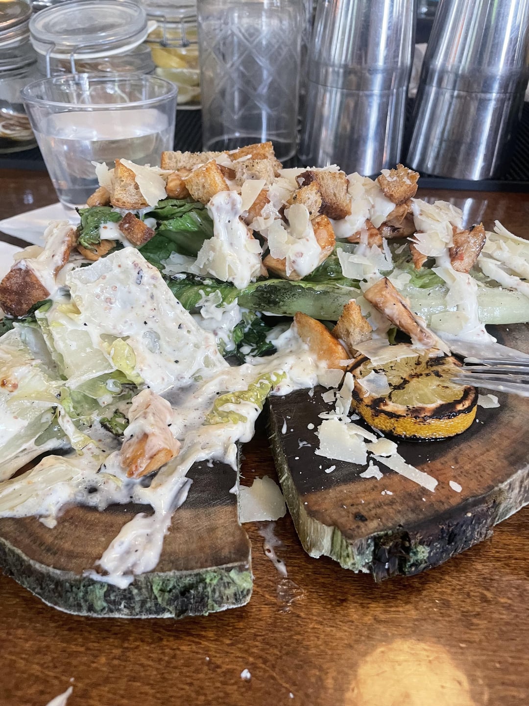 Aside from that awful piece of wood. It looks like a good Caesar salad.