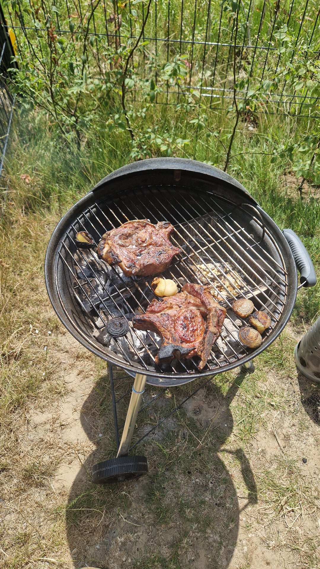 I throw the grate in the high grass overnight… shit wipes right off