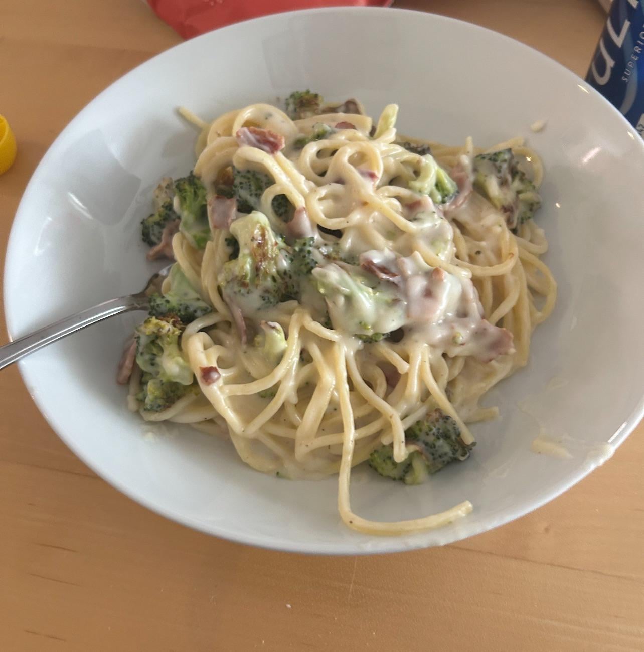 Used the bones of the bacon broccoli supreme spaghetti recipe but had to come up with an alternative for the HelloFresh roux concentrate. The sauce was a little thick but I know what to tweak for next time and it beats the watery sauces I always had when I followed the exact recipes.