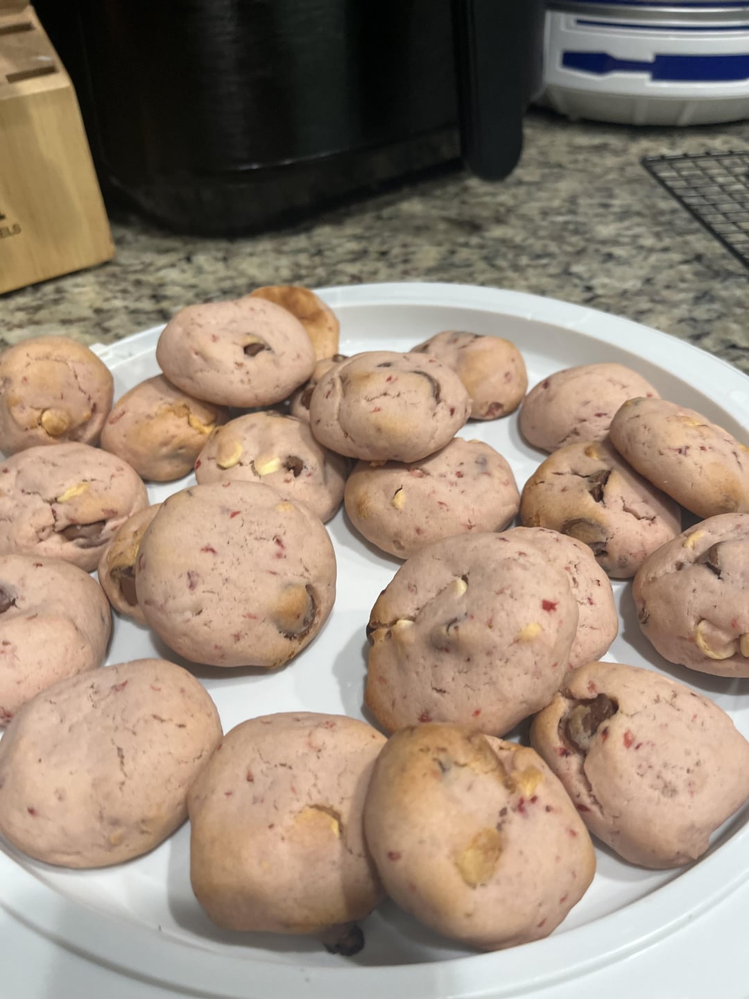 Strawberry cookies with black and white chips.by Five2one521 Write A CommentYou must be logged in to post a comment.