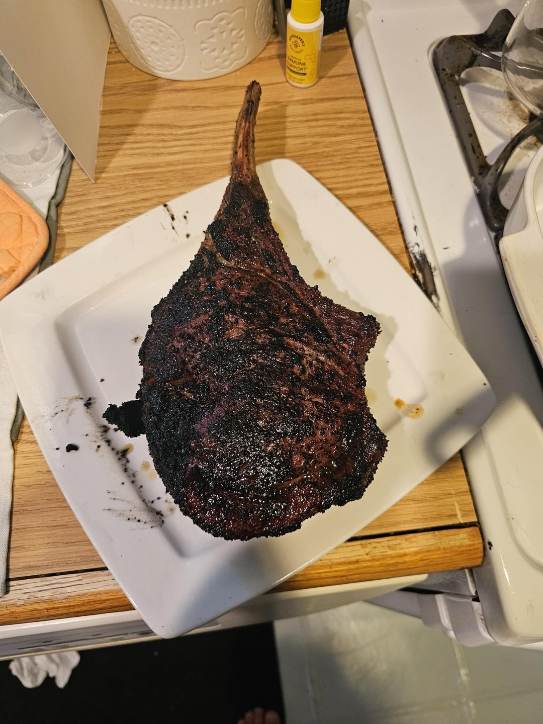 Nailed this one. Costco Prime bone in ribeye on Pitboss.by Chaz_Beer 17 Comments rakondo 8 months ago Technique and temps? Realistic-Fact-2584 8 months ago Oh yes Created_Name 8 months ago Very nice LeadNo9107 8 months ago Yeah ya did! That looks amazing. Would smash! 4rtdud3 8 months ago 10/10 Capable_Obligation96 8 months ago Ya think 🤔 ? Catlestial 8 months ago Ooooooohhh my goooood my mouth is watering Sudden-Breadfruit653 8 months ago Its a half and half steak. Tiny-Atmosphere-8091 8 months ago This shit right here is a slam dunk. bubbletrashbarbie 8 months ago Are you available for private events? This looks spectacular xosherlock 8 months ago One of the best looking steaks I have seen!!! Thanks for sharing your technique! idfc1337 8 months ago idk why you like the sear burned but other than that 10/10 282920 8 months ago Good ass cook but the char is mad burnt kashmir0128 8 months ago Yeah you did bro HeadAbbreviations786 8 months ago Phenomenal! Put that method on repeat. Looks 10/10! International-Key211 8 months ago That’s a perfect steak mets2016 8 months ago Who tf weighs a steak with a bathroom scaleWrite A CommentYou must be logged in to post a comment.