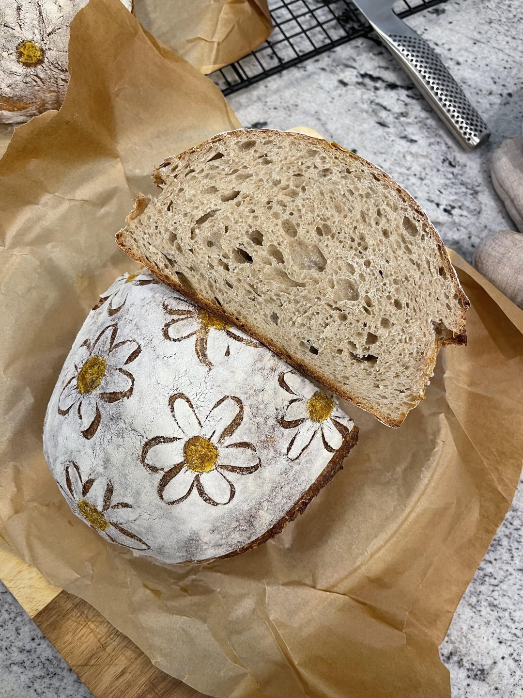 I’d be lying if I said I enjoyed scoring this loaf 😬by oceanbreezepalmtreez 8 Comments smokedcatfish 8 months ago I’d be lying if I said I didn’t love it! FluffyPotatoBread 8 months ago So dainty! What did you use to color the yellow part?Edit: added a word genbizinf 8 months ago Fabulous! What are you using for the yellow dots, please? Artistic-Traffic-112 8 months ago Hi. Awesome. Great loaf, lovely crumb. Well done CrystalLilBinewski 8 months ago Oh! I thought it was a stencil! CoffeeCannabisBread 8 months ago Yea I’d be lying if I said I made even 1/2 of 1 of the cuts lol. Well done. soma-luna 8 months ago Worth it. pegarciadotcom 8 months ago So gorgeous though, totally worth it!Write A CommentYou must be logged in to post a comment.