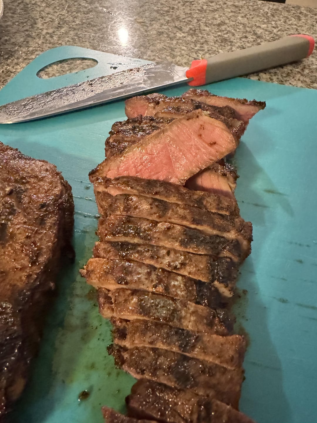Sous vide strip loin at 129f for 1.5 hrs, smoked lightly while fire built, seared over lump charcoal and oak. Air fried waffle fries finished with Cajun seasoning. “Summer” salad tossed with Italian dressing, olive oil, balsamic vinegar, 24mo parmigiano reggiano, lemon zest and lemon juice.