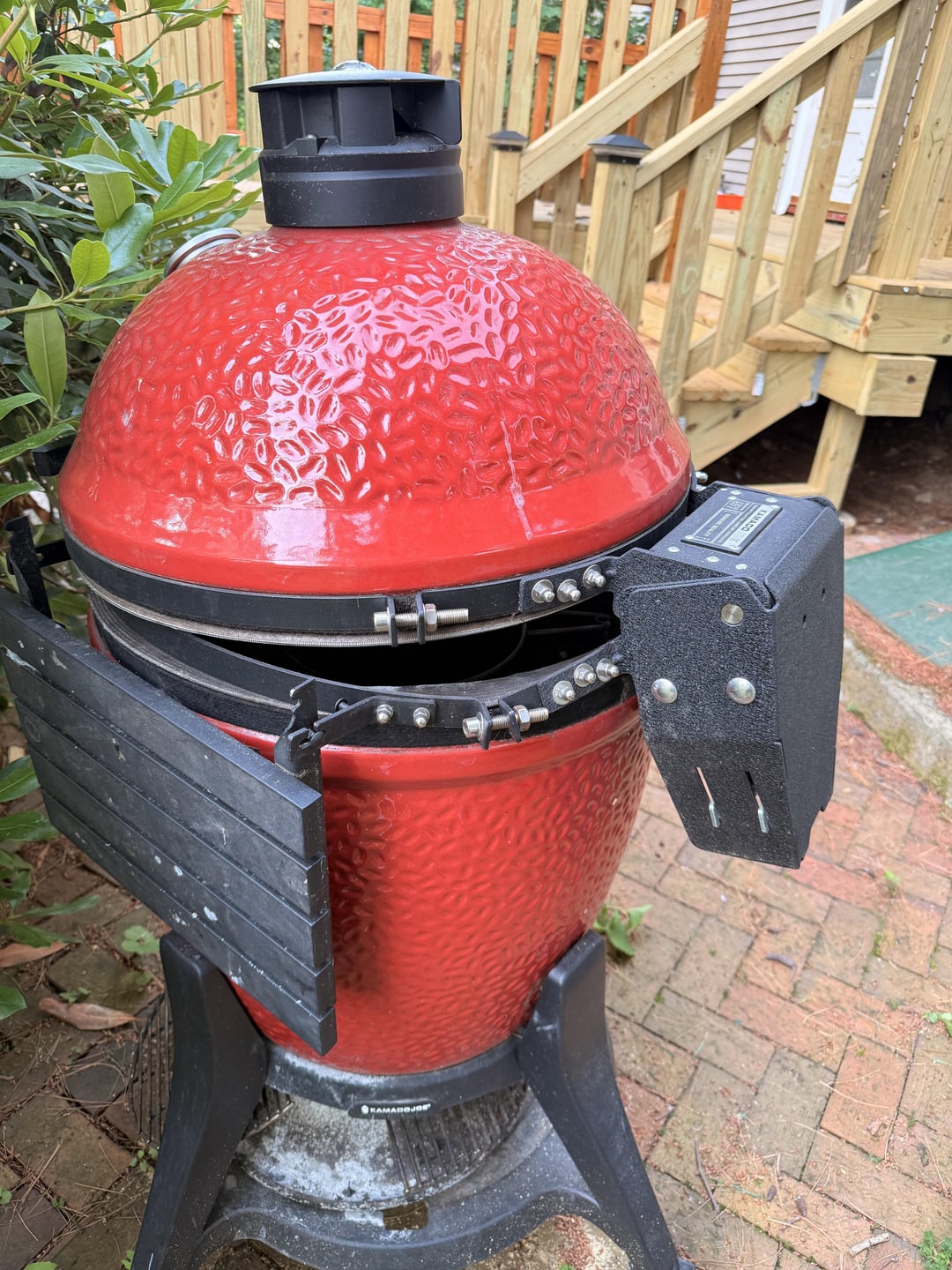 Looks fixable to me. The top chip can be filled in with some high heat mortar. Like someone else said, you should take the rings off and straighten them out and put them back on if you can’t get a new part or a new warranty bottom. I fixed kamdo that had a hole in it. I made the hole trying to replace the thermometer and made a 2 inch diameter hole. I thought it was over, and then I used the fireplace mortar. I still have that Kamado and used it tonight. I have a new KJ Jr. Also but I didn’t want to give up my little mini 10″ kamado. Good luck!