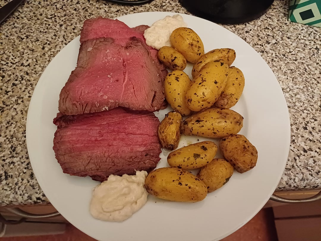 Dry brine beef joint. Simply served with new potatoes horseradish sauce and beef gravy. by ksw85 Write A CommentYou must be logged in to post a comment.