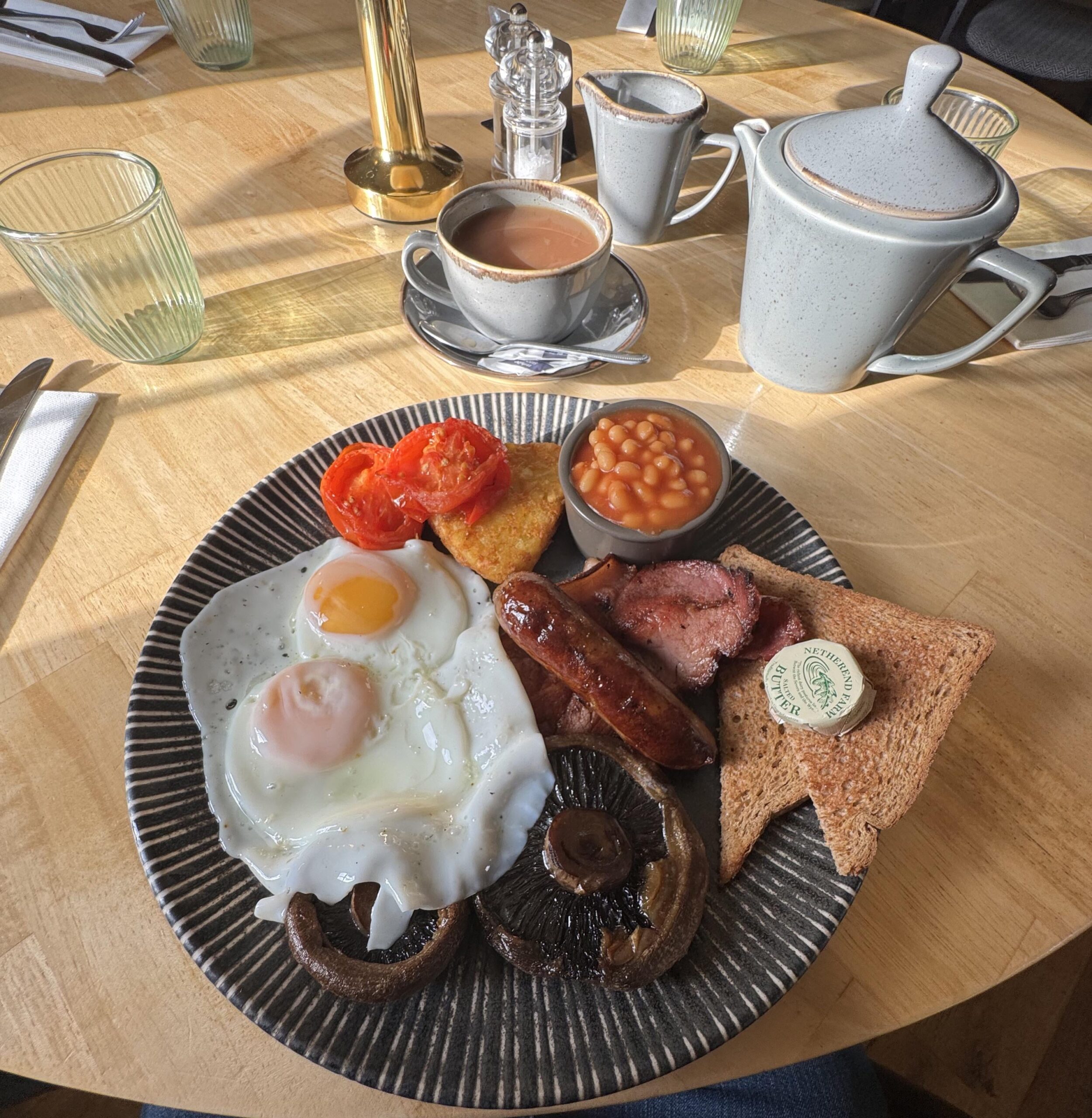 A decent breakfast. An extra sausage and black pudding would have topped it off. 7/10.