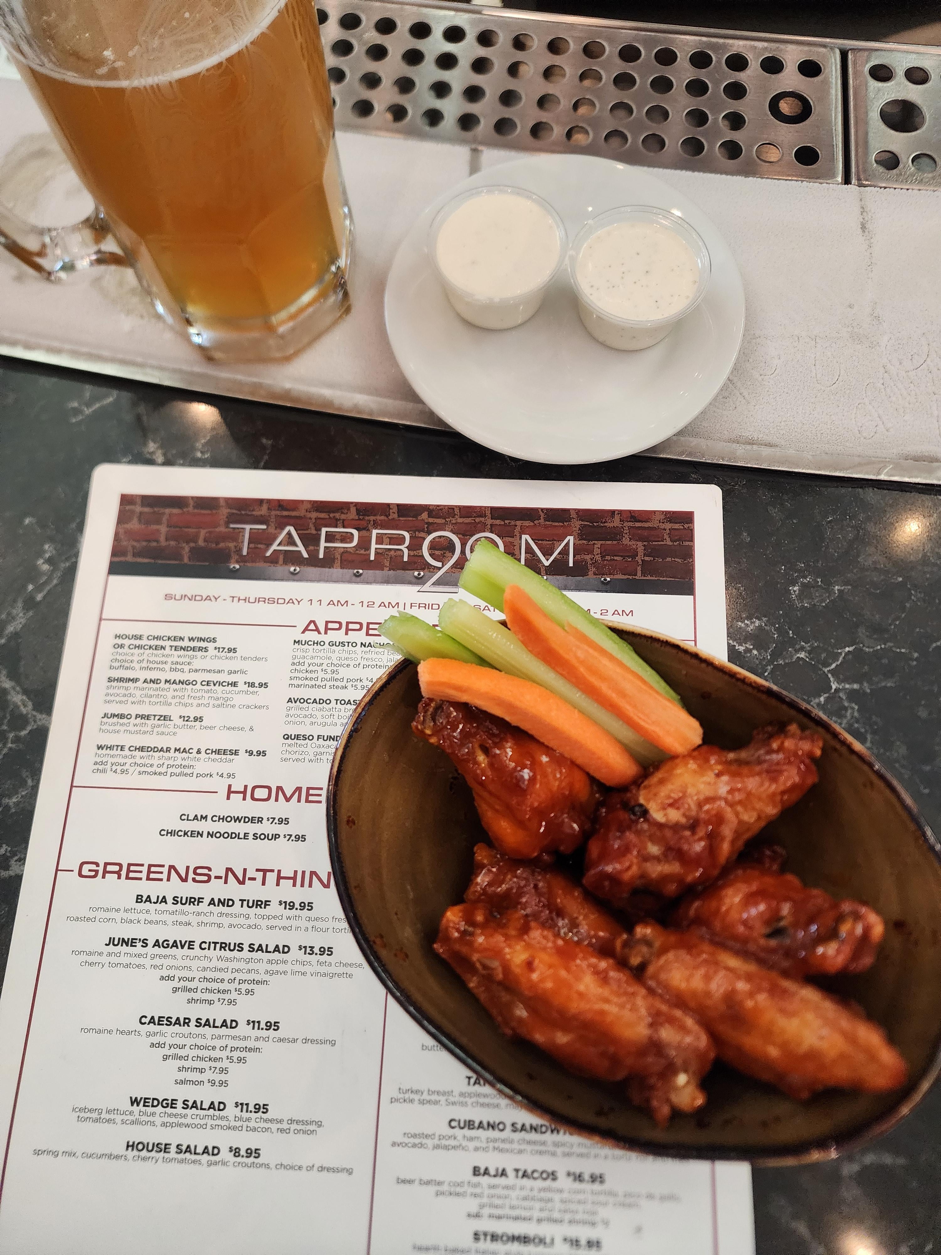 Ooph. Of course they don’t list the number of wings you get on the menu. For 17.95 I’m expecting 10~12 wings, or at least a side of fries. The prices for everything else seems ridiculous too. I wonder how sad that 8.95 house salad looks.