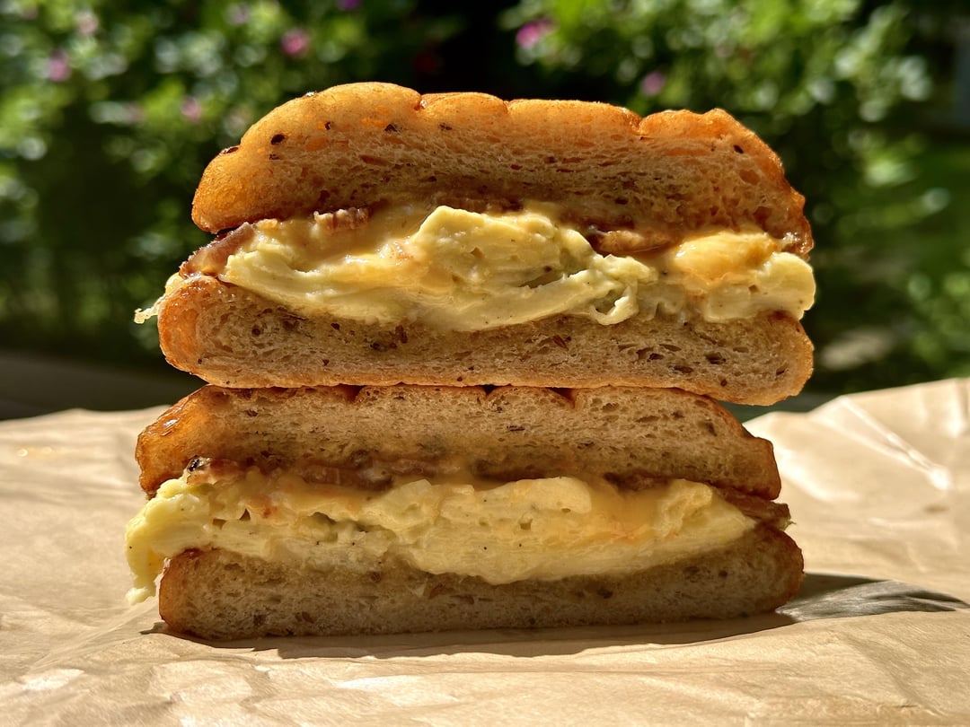 Scrambled egg, bacon, American cheese, habanero hot sauce, and homemade maple roasted garlic aioli, on a buttered and griddled homemade light rye bun. by No_Pattern3088 3 Comments Both-Friend-4202 5 months ago You’re made up! 👍😋 y3ll 5 months ago Got a recipe for the bun? Looks awesome herberstank 5 months ago Marie Sharp’s by any chance? Looks excellent, nice workWrite A CommentYou must be logged in to post a comment.