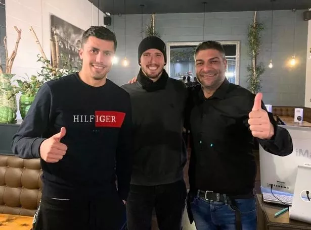 Man City stars Ruben Dias and Rodri pictured at Vero Moderno Italian restaurant in Salford with owner Beppe earlier this year(Image: Vero Moderno)
