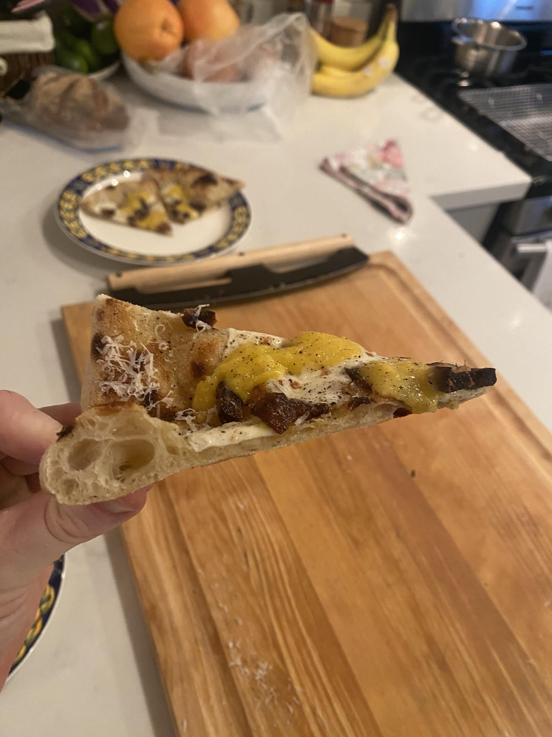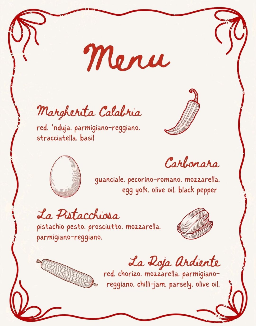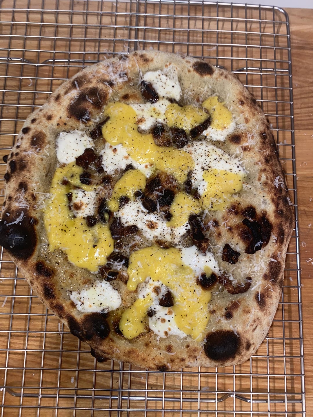 Cooked these for my wife a few weeks ago, they were very well received, especially the carbonara pizza. Cooked in a Gozney Dome oven with gas as the fuel source. Toppings are included on the menu in the last picture.