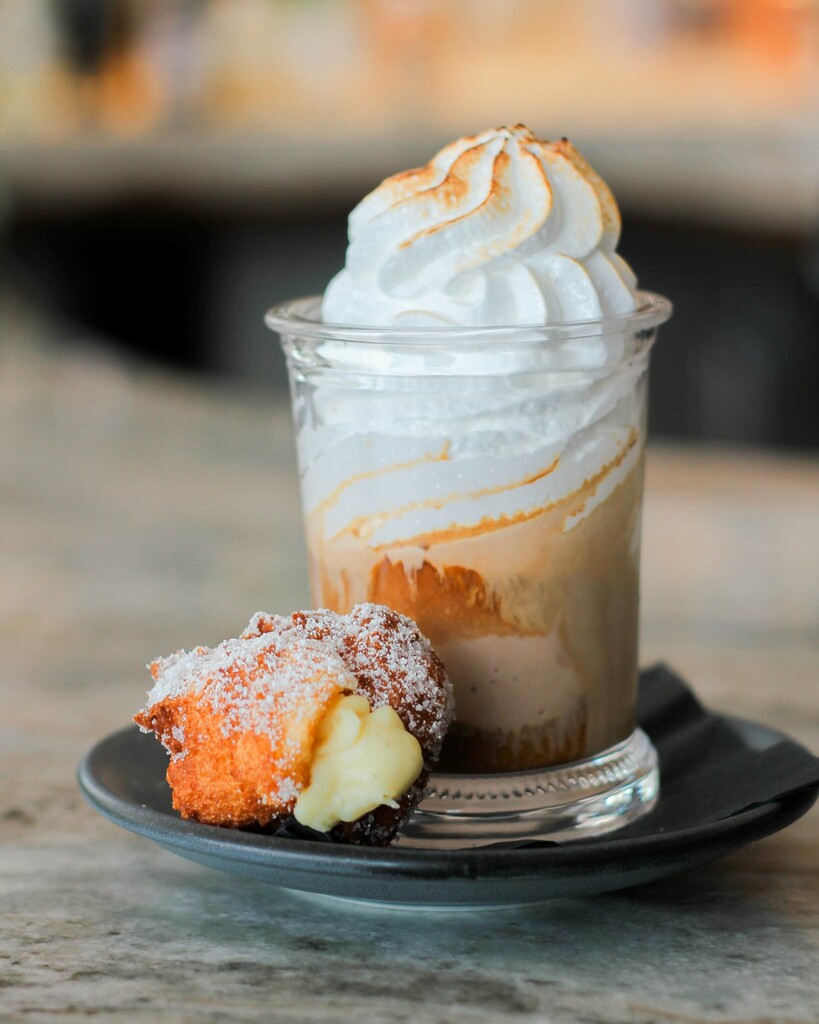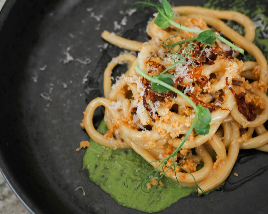 Seasonal pasta dishes also take center stage, such as the Pici with miso-grilled trumpet mushrooms and a dandelion pine nut salsa verde, and the Capelletti, a squash-filled pasta finished with fermented garlic honey and zucchini sott’olio. The Sorpresine offers a bold blend, pairing veal alla vodka with yellow tomato, nduja, caciocavallo, and a balsamic crumble for a dish rich in savory-sweet complexity.