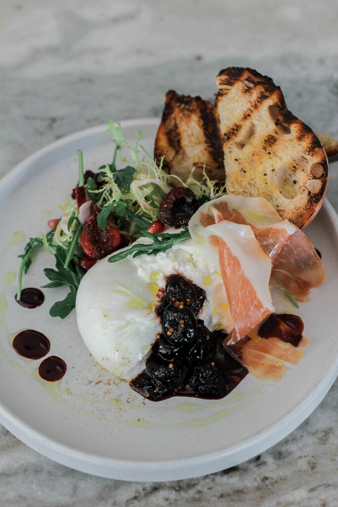 Chef Matt Carter showcases the restaurant’s signature balance of tradition and innovation with standout starters like the Burrata D.O.P. with Prosciutto, elevated with pomegranate, cherry mostarda, pistachio, and served alongside Noble Bread and EVOO—an elegant play on richness and acidity.
