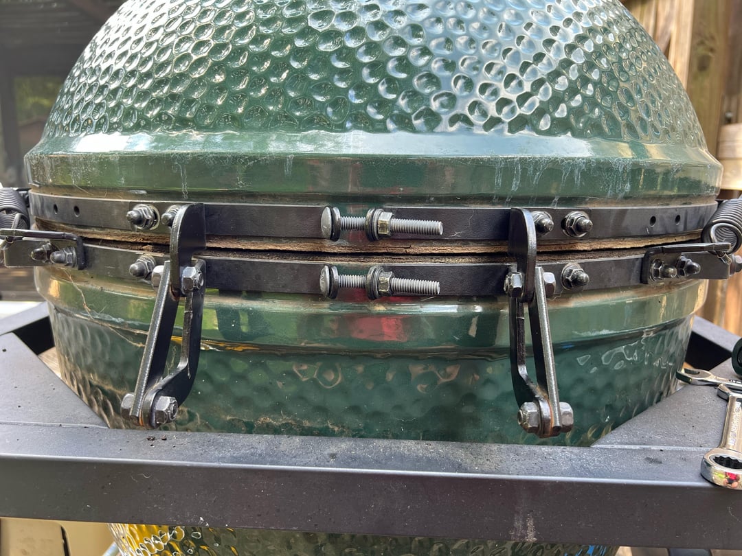 As you can see the Egg is closed super damn tight on one side and has a slight opening on the other. I loosened the bands to fix the bottom band as the back side was lifted and the front was shut. Can anyone explain to me on how the bands and hinges work?