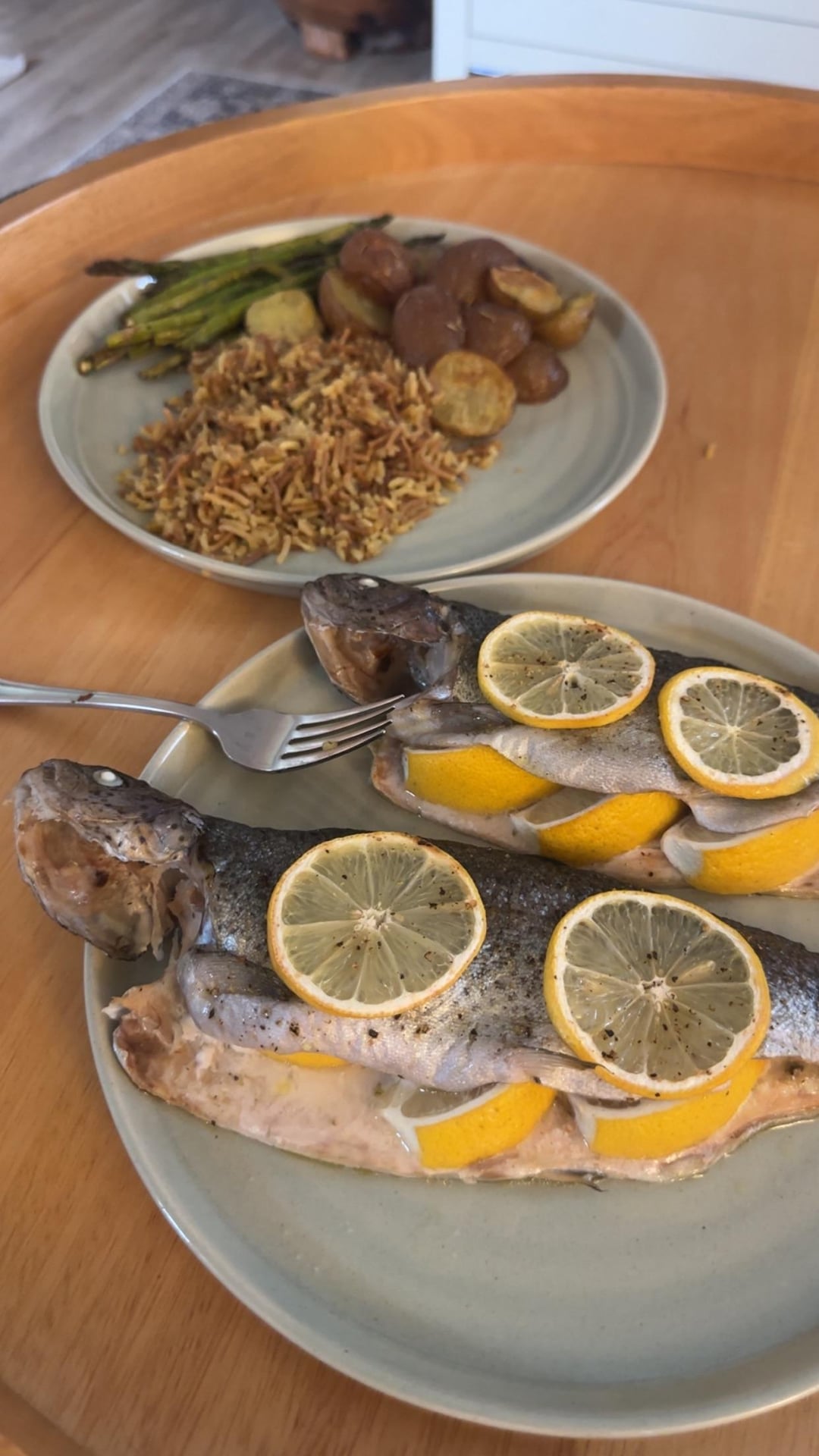 Wife and kids come back tomorrow. Might as well have one more good dinner with the dog. He was a big fan of the trout.