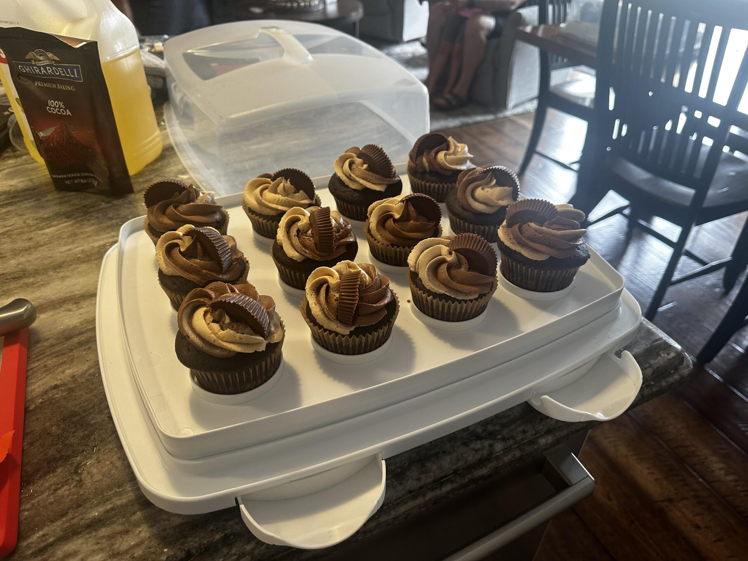 Made chocolate cupcakes with a marshmallow peanut butter filling and swirled peanut butter and chocolate buttercream frostingby PlusAnalyst7877 Write A CommentYou must be logged in to post a comment.