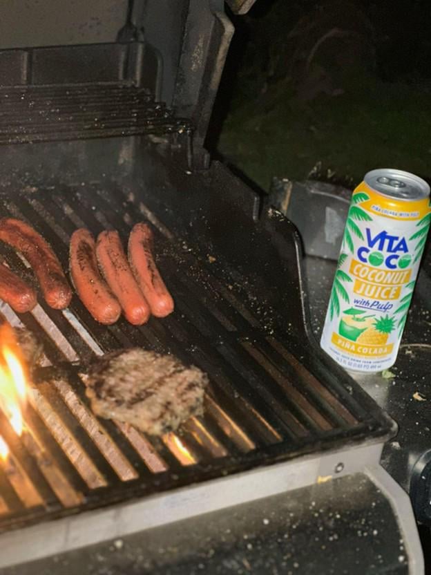 So I'm out here manning the grill with my new go-to summer combo. Found these Vita Coco piña colada coconut juices at target last week and figured why not? It's actually so good, but I'm just in my backyard avoiding my neighbor's eye contact while he mows his lawn for the 3rd time this week lol.