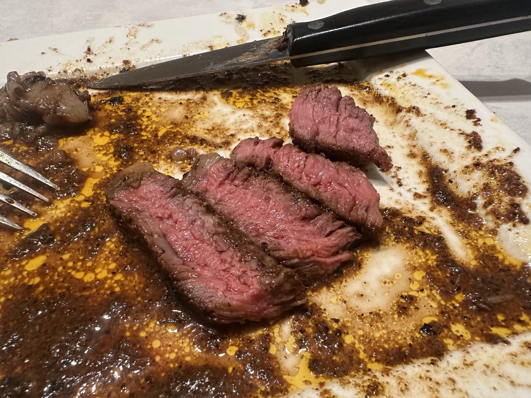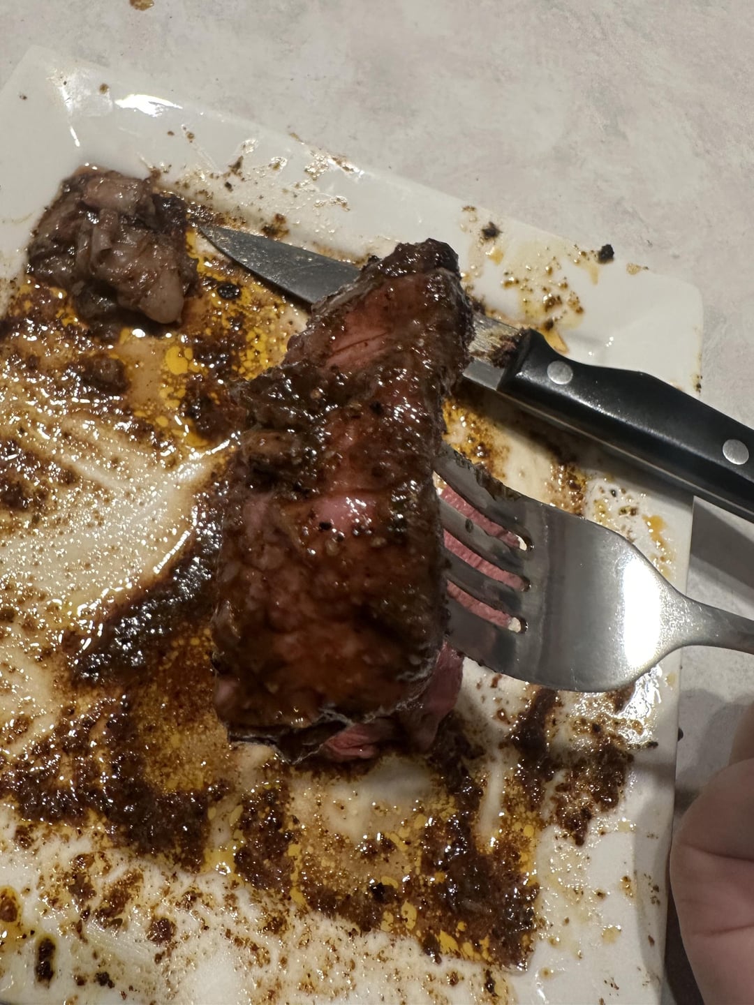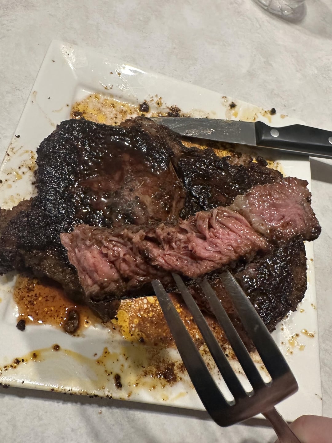 Pretty good it just needed to rest a lil longer all that juice thats on the plate should be in the steak