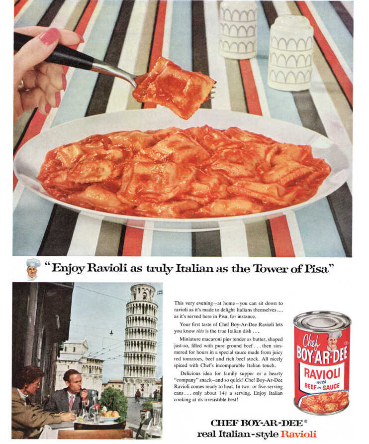 The new company played a major role in introducing Italian food to the U.S. — and also changed the way American supermarket shelves were stocked. “At the time, when they started Chef Boyardee [in] 1928, they were the largest importers of Parmesan cheese from Italy,” Boiardi explains. “They also brought in tons of olive oil.”