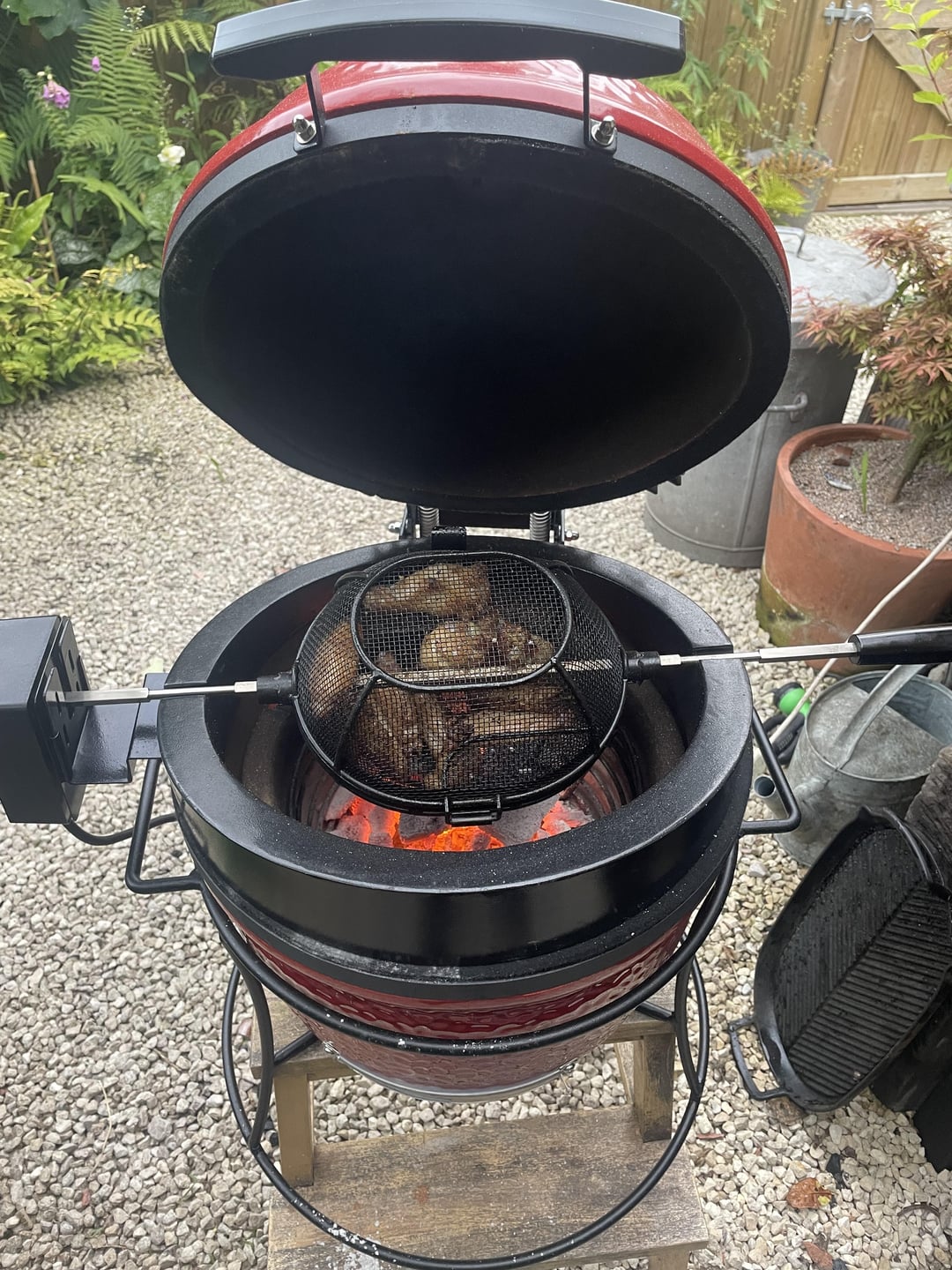 Making some carnivore style wings. Just salt and pepper with some duck fat. They were delicious. by Total-Combination-47 7 Comments Lindenbaumlemma 4 months ago This calls for a video. CantDunkOrSk8 4 months ago Where did you get the base for the rotisserie? AbbreviationsOld636 4 months ago Carnivore wings lol. Isn’t any wing a carnivore wing? Maybe not tofurkey 🤔 Squizgarr 4 months ago Too much work to cook 5 wings 🤣 Smilner69 4 months ago I am thoroughly jealous of your setup. As a Jr owner myself I rarely see any cool add-ons Icuh8me2 4 months ago BBQ Guys has a new Primo Rotisserie Kit for Oval Joe Jr! Kind of pricey tho CantDunkOrSk8 4 months ago I built one. But wasn’t 100% successful. Check my profileWrite A CommentYou must be logged in to post a comment.