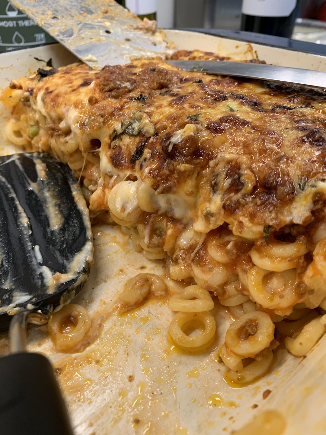 Se prepara muy parecido a la lasagna pero usando capaz de estas pastillas en forma de anillo. Deben ser cocidas previamente para luego armar en el molde y luego hornear!