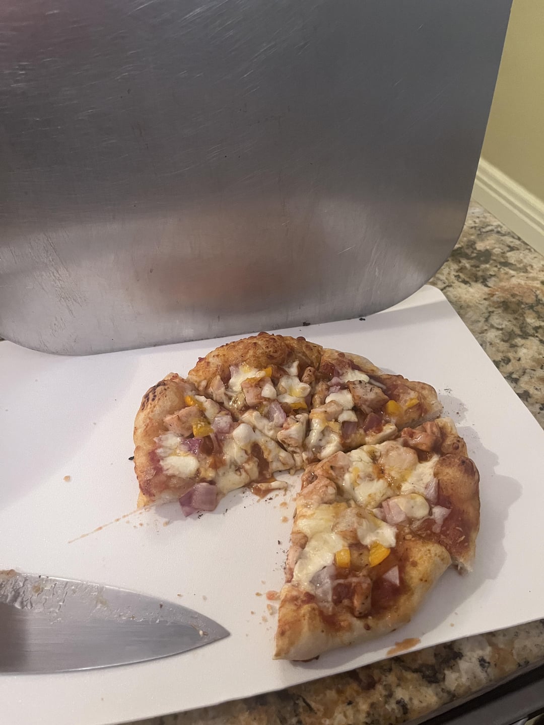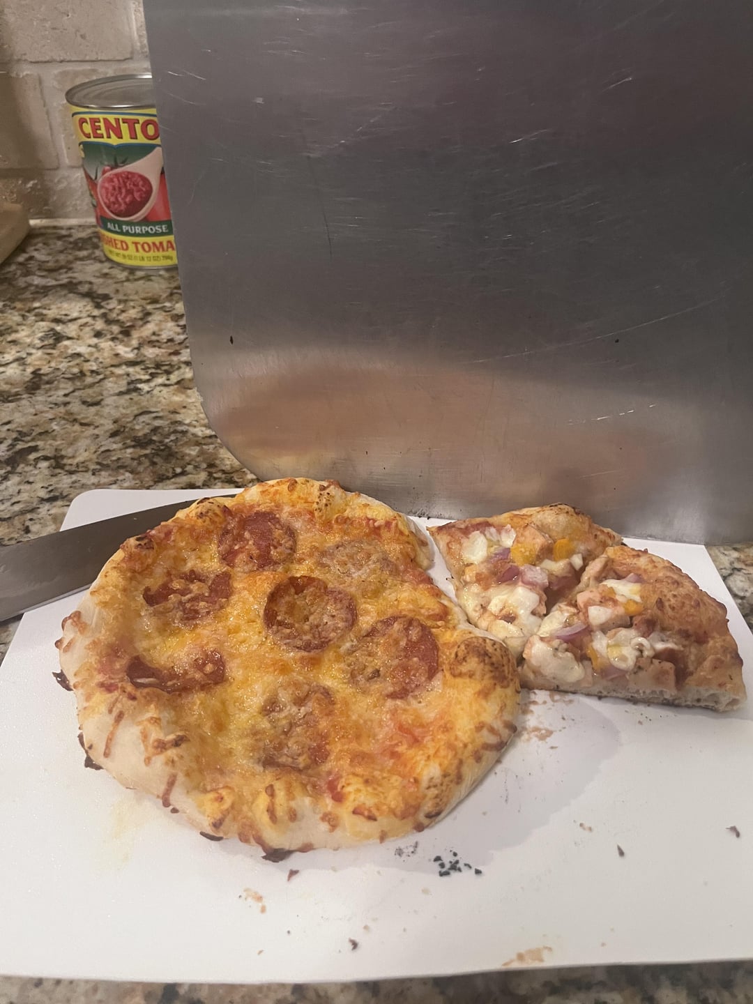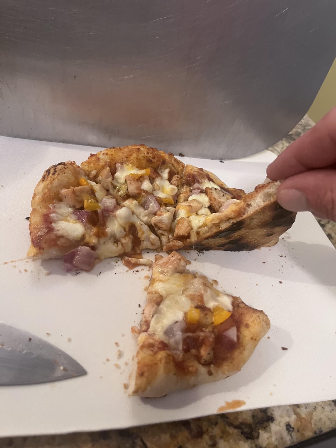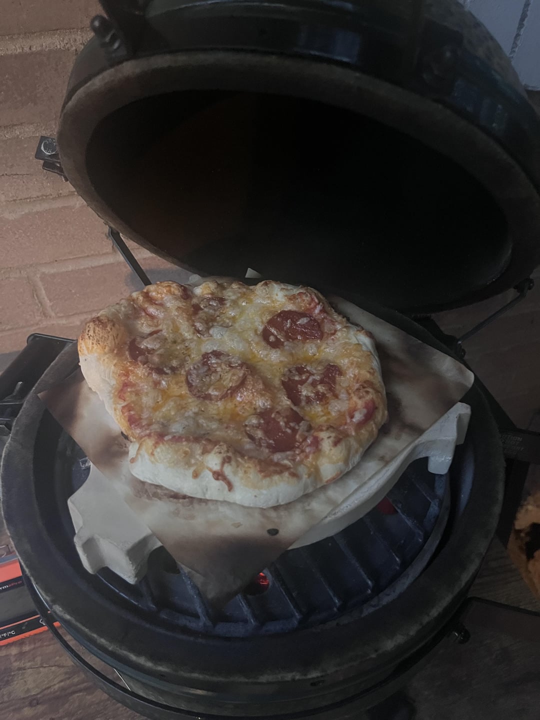 This cook was long overdue. I’ve owned this mini since 2009, but just got a conveggtor for it and tonight was the first time making pizza on it. Preheated to ~550f for 45 mins while prepping a BBQ chicken with red onions+bell peppers and a classic pepperoni.