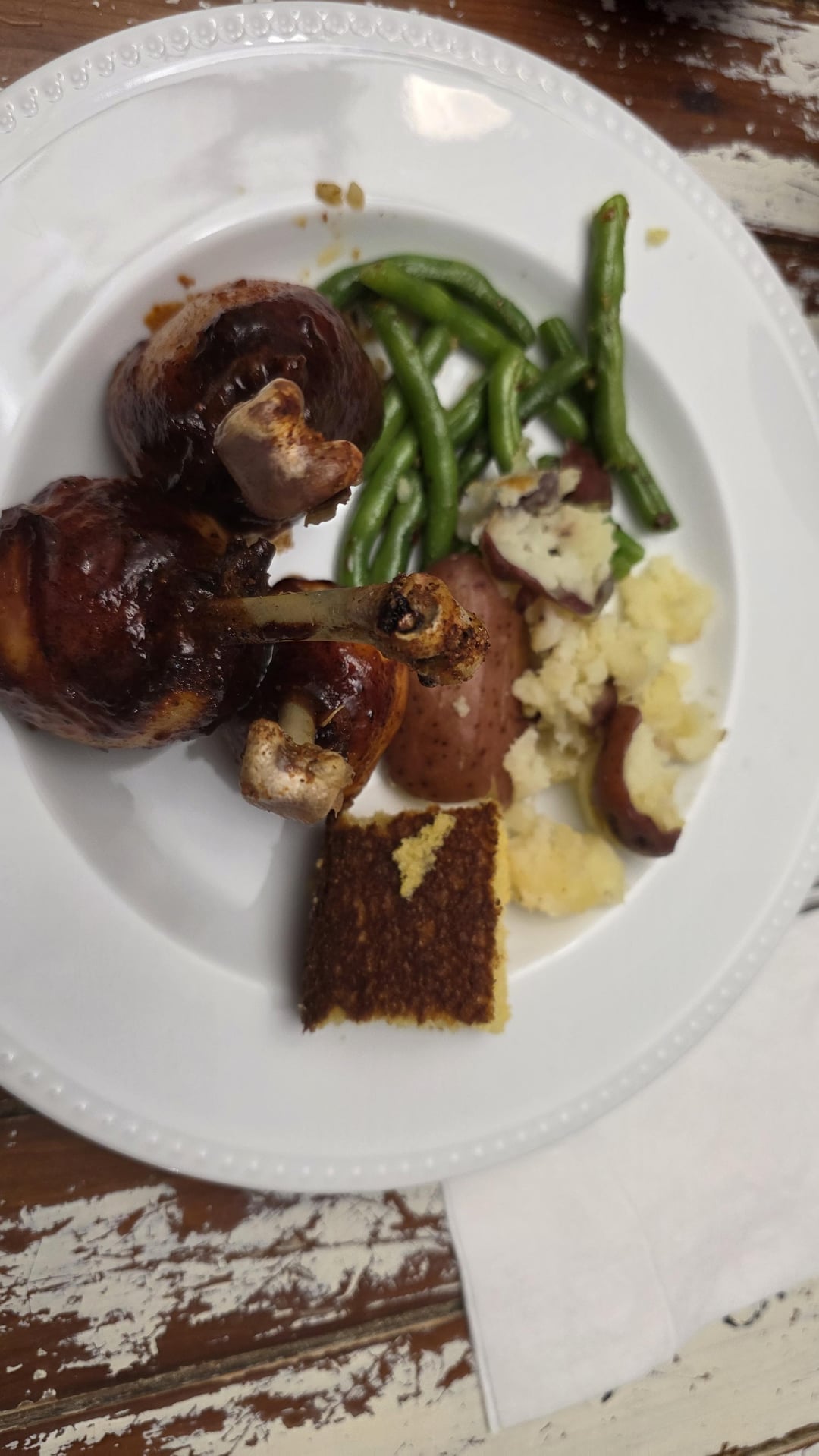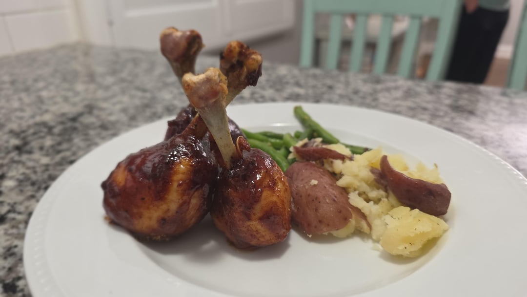 Dunk the chicken leg in your favorite bbq sauce or glaze.