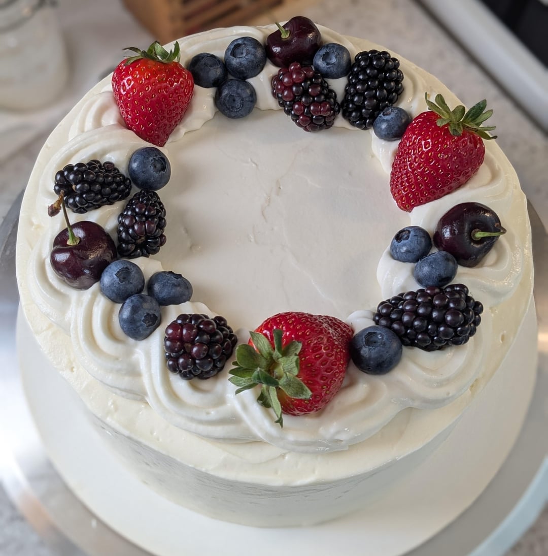 This one is a berry Chantilly cake with raspberry jam, sliced strawberries, blueberries and Chantilly cream in the layers. I will share photos of a slice if I get a chance! I'll be making another one for a friend's birthday soon. π