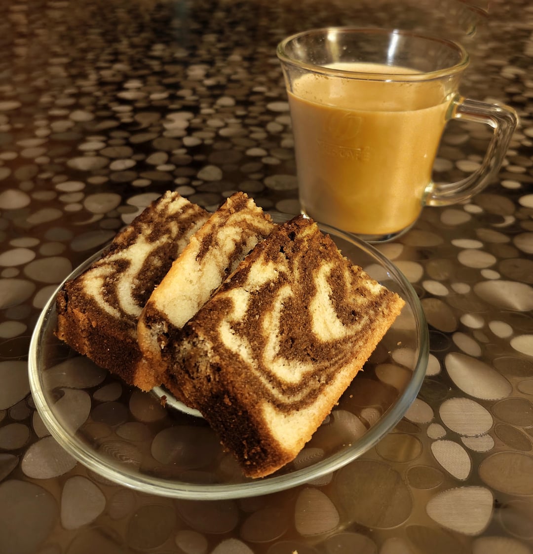 This is my first attempt at baking a Mocha Marble Cake. The cake turned out fine taste and consistency wise, and the swirls were quite fascinating after cutting into it. Do let me know what you think about it! Any and every suggestion is welcome 🤗