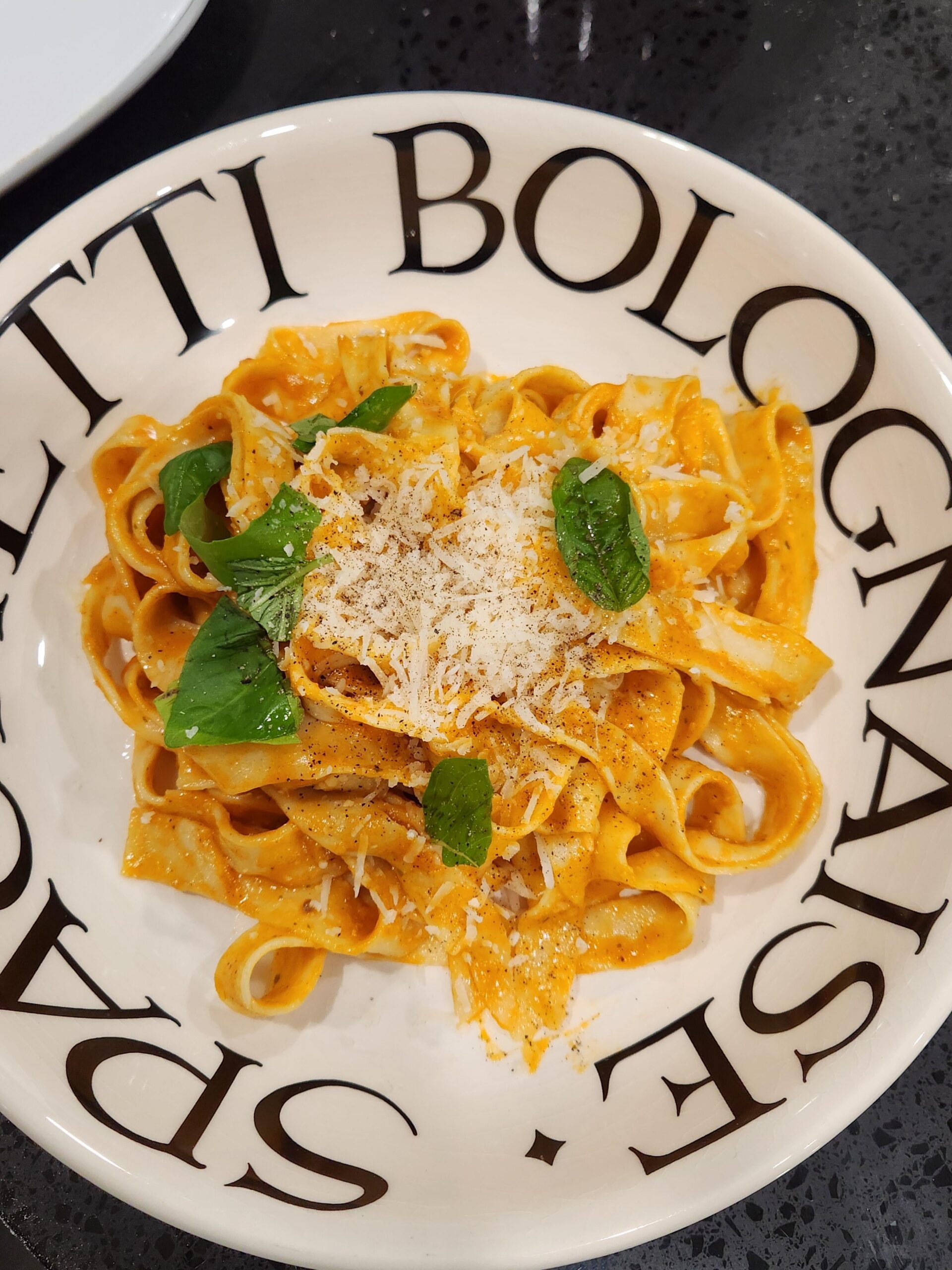 Gorgeous pasta, gorgeous Emma Bridgewater dish!