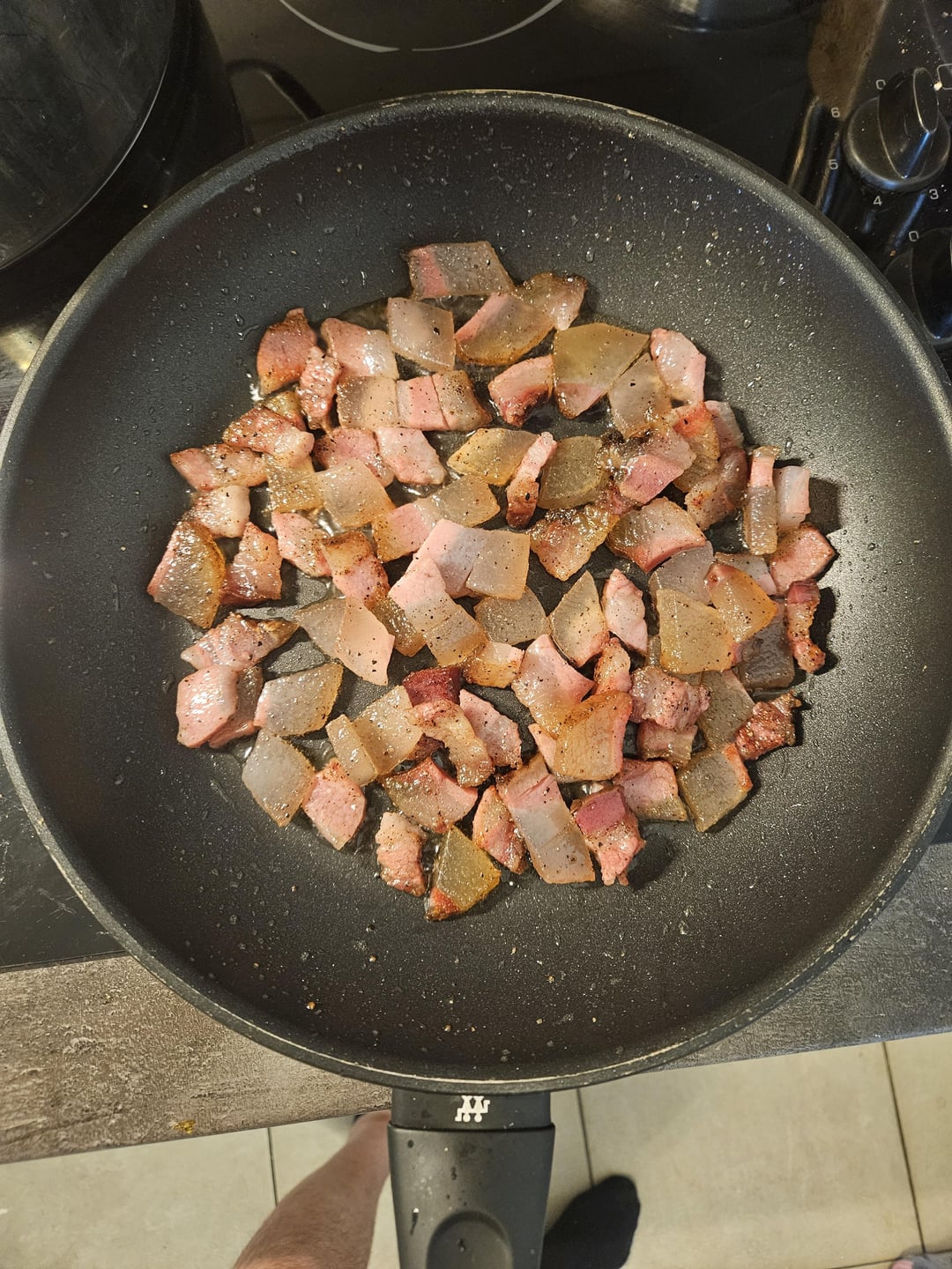 I feel like you need to cook your guanciale a little more. The fat hasn’t started to render. : /