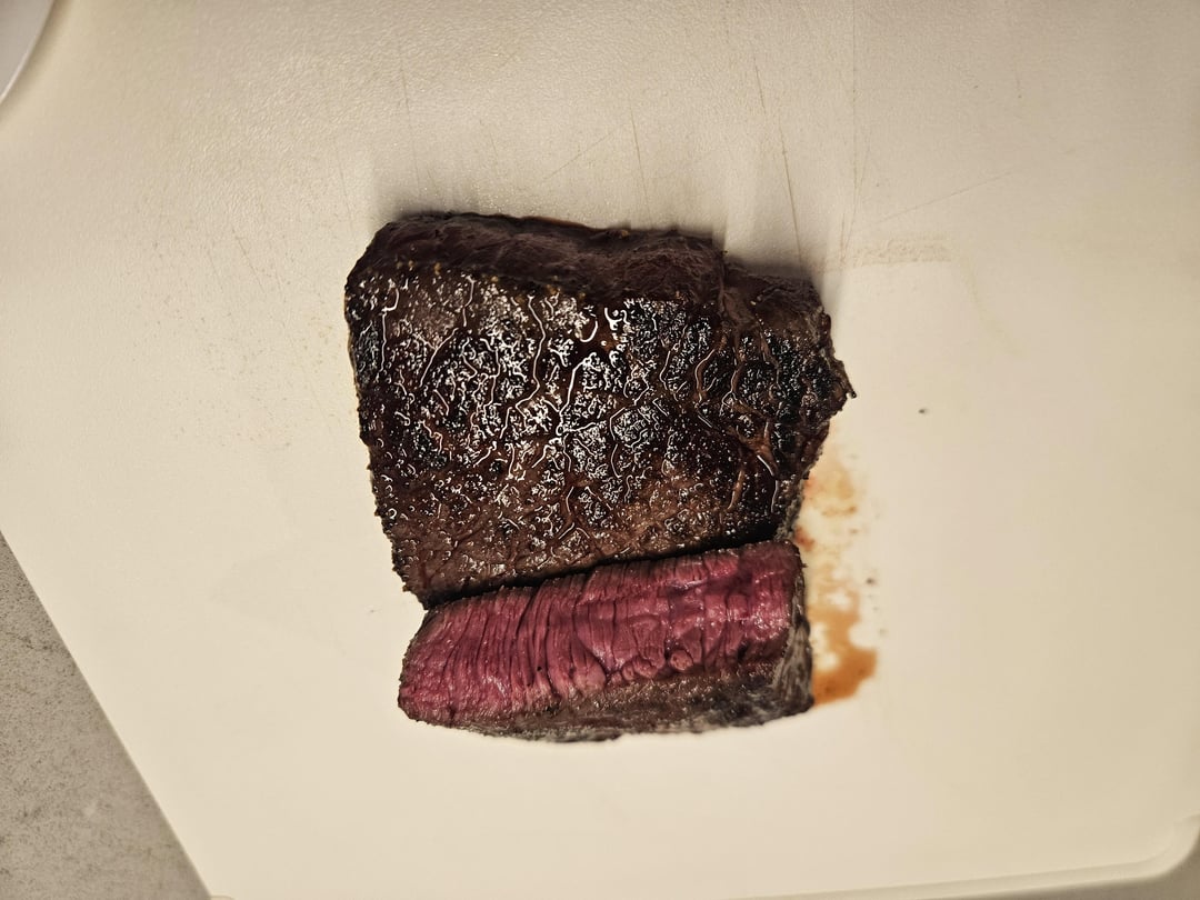 Brown edges are very thin as they should be. Beautiful color – perfect medium rare. Honestly, it seems very hard to improve on this; you did a fantastic job.