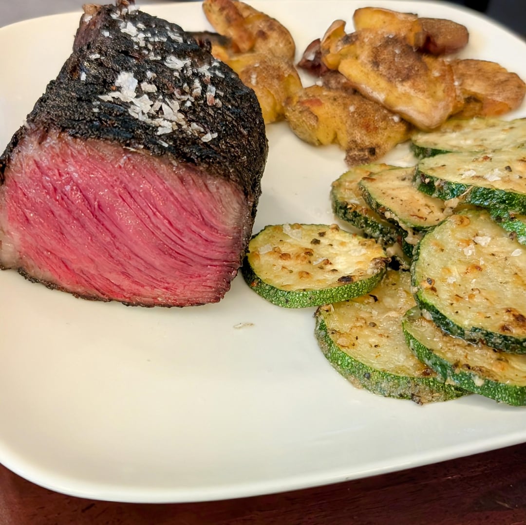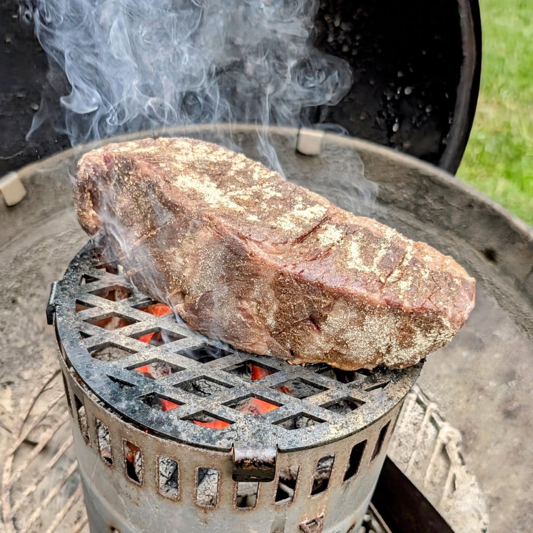Found an excellent looking 1.5lb Wagyu Denver steak at a local butcher…and whew boy was it tasty. Dry brined with smoked salt, 3 hour sous vide at 130°, then cooled and seared over charcoal. Outrageously marbled and tender… Almost too tender… Would probably bump the temp up a few degrees if I were to do it again for a tad firmer texture.