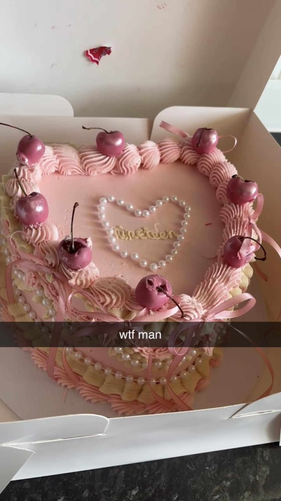 it sucks you have to salvage this when it’s an expensive gift to yourself for your birthday! you should absolutely complain and get as much recompense as you can, but for now it’s not unsalvageable! i would take off the peals and cherries – you can easily replace the cherries with fresh ones. scrape the middle so the icing blends, get some edibles pearls/those silver balls from the shop and make your own heart. stick a 1 and 9 candle in the heart if you don’t feel you can ice the word on yourself. and it better taste good! happy birthday 🎂