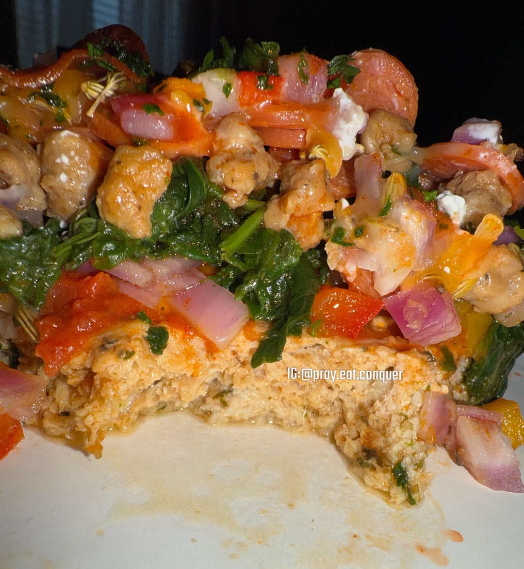 I did a similar crust with canned chicken (tuna consistency).
