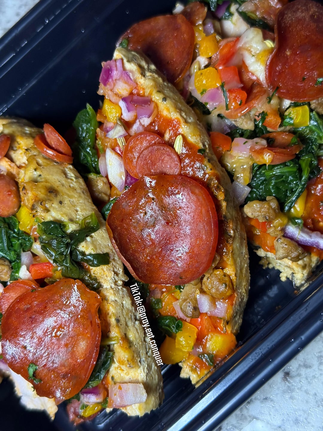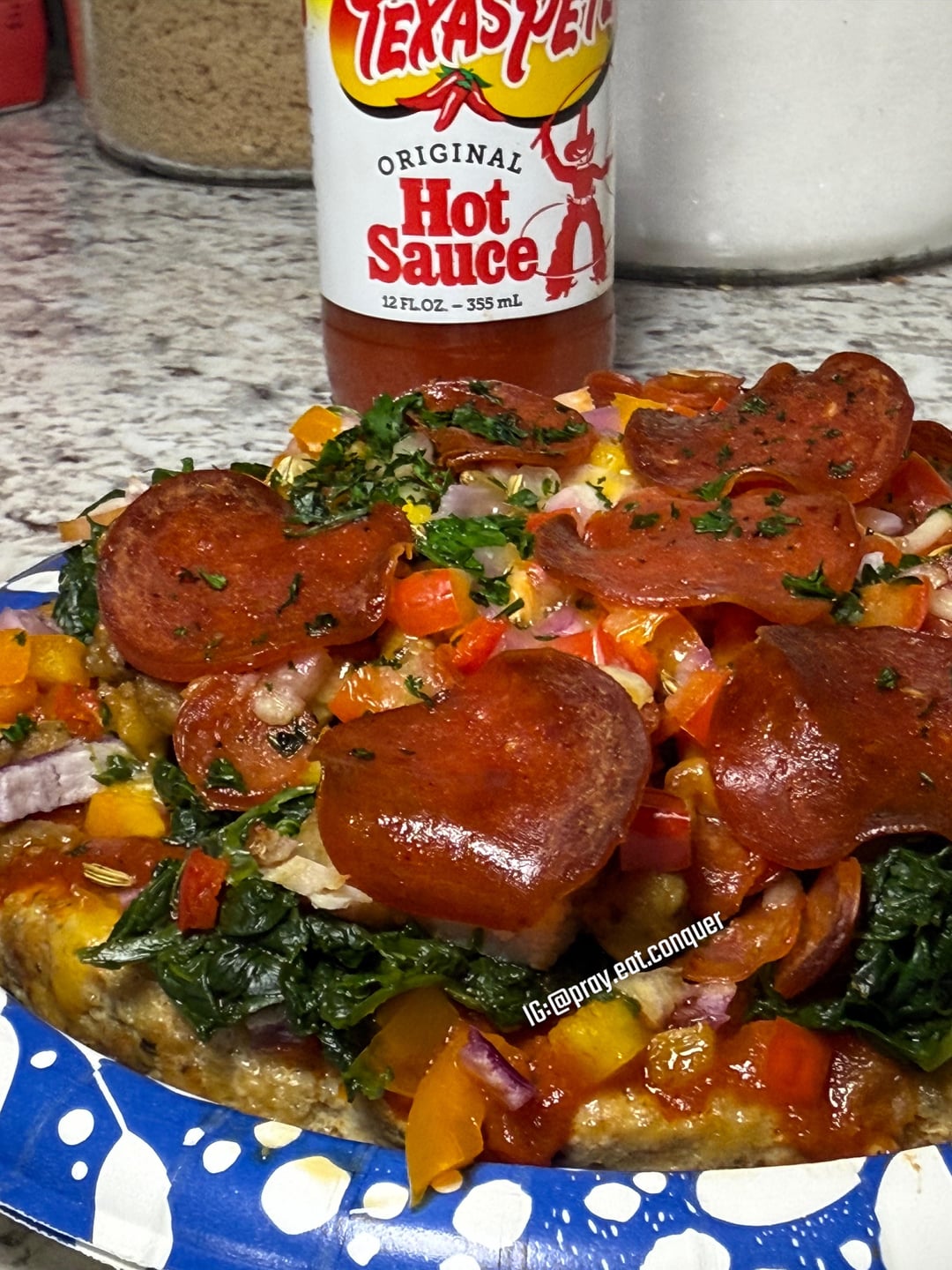 Remove from oven and place the toppings of your choice (this is what I used)
