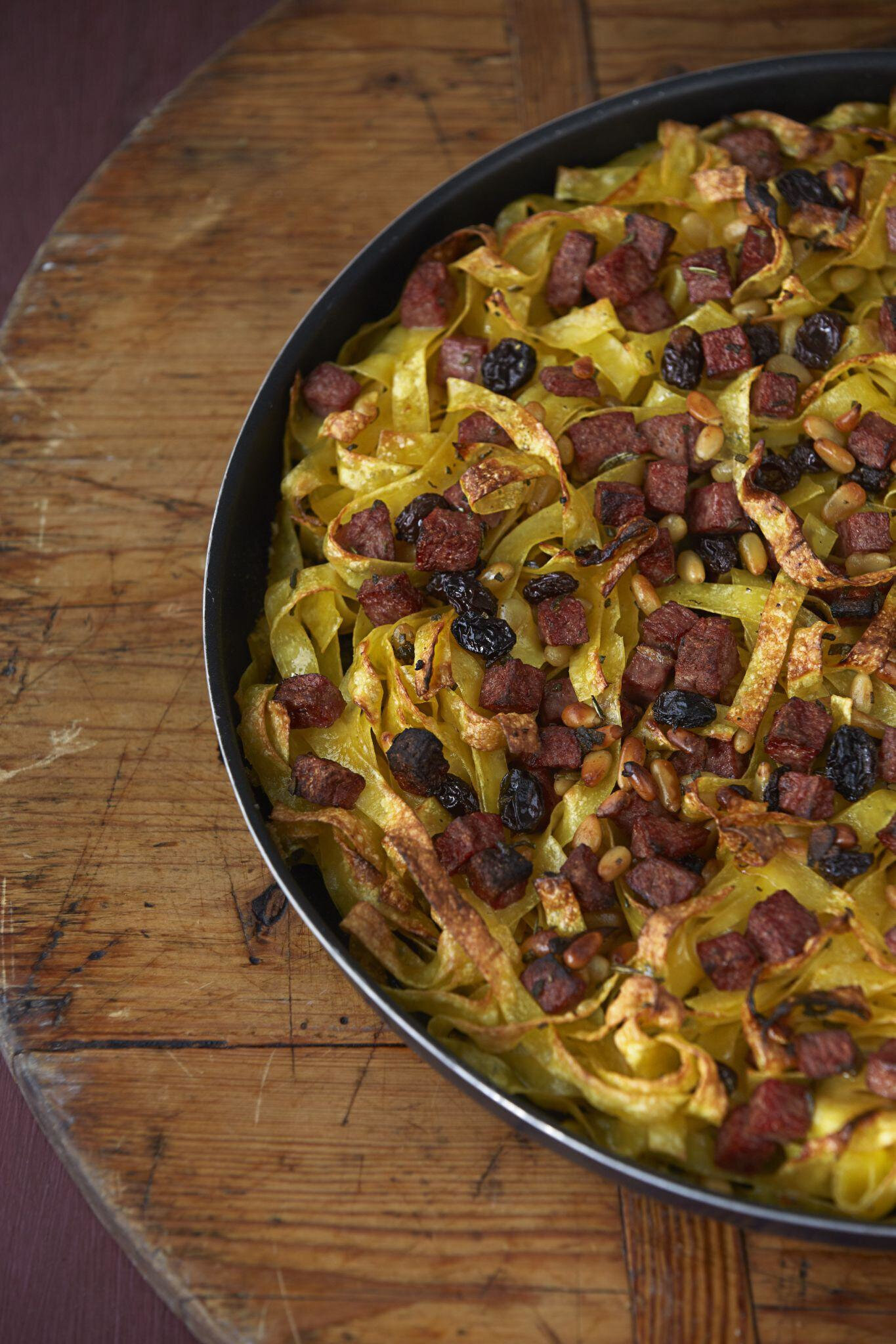 Nacamulli also introduces us to recipes like Ruota di Farrone, also known as “Pharoah’s Wheel,” which, like other recipes from the region, blends elements from Ashkenazi, Sephardi, and Italian cuisine. It was traditionally served when the parsha for the Jews’ Exodus from Egypt was told, but I’d be happy to make this any time of year as an excellent meaty pasta dish! I also love the idea of a dish that blends several Jewish backgrounds but still is distinctively Jewish with what it represents.