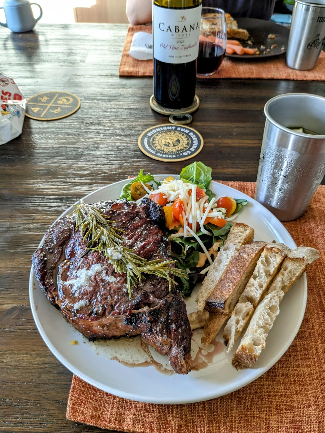 Barely enough room for the whole Tomahawk, but a fun item to grill considering it's thickness. I know it's a slightly gimmicky entre however it does look pretty awesome.
