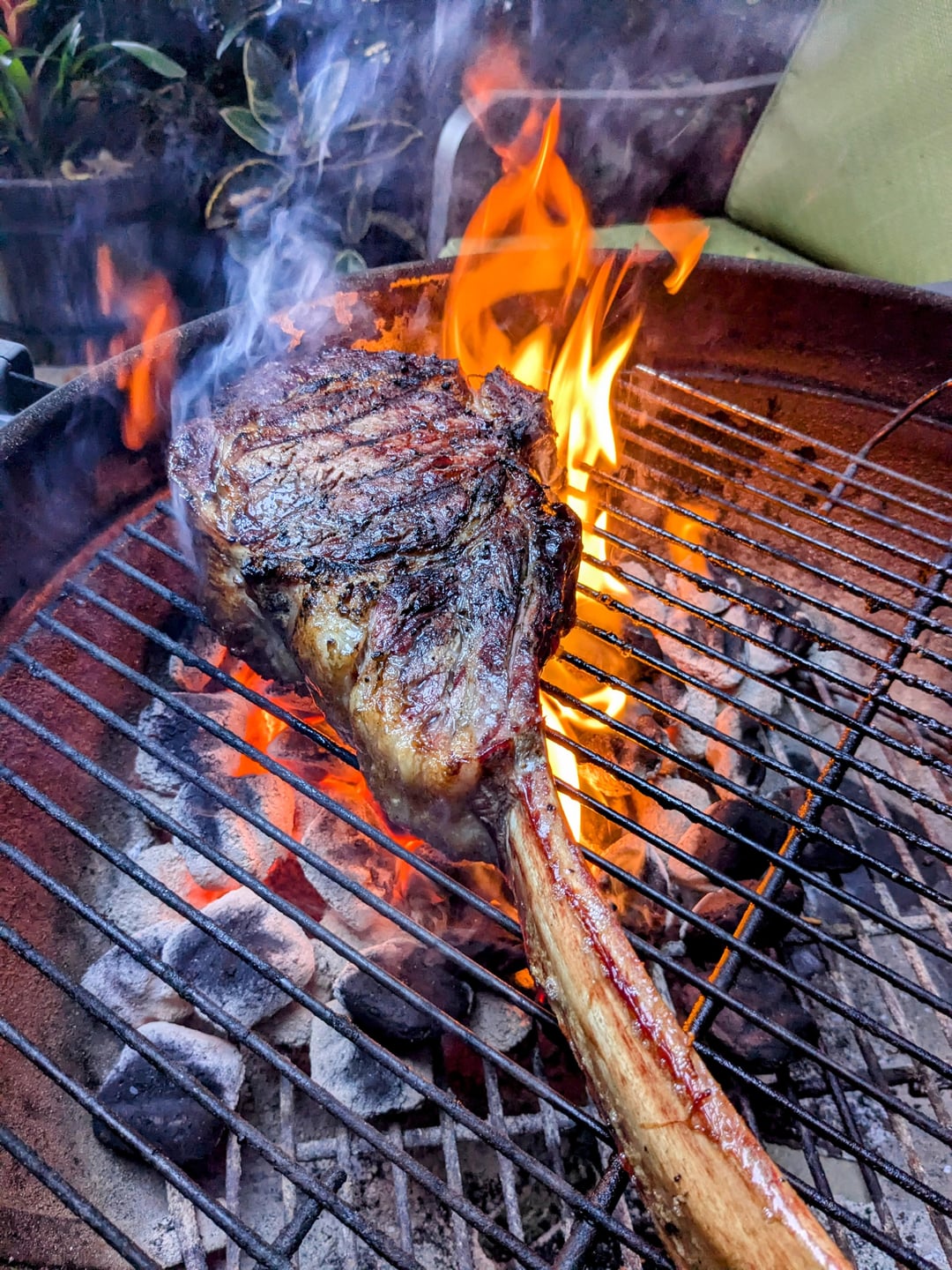 Made the same last weekend with two tomahawks, I need to saw off some of the bone to fit in my 22′ kettle..haha