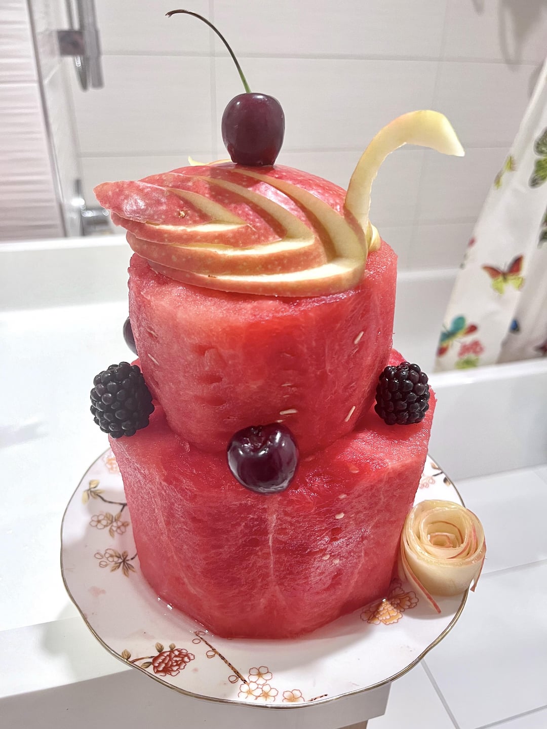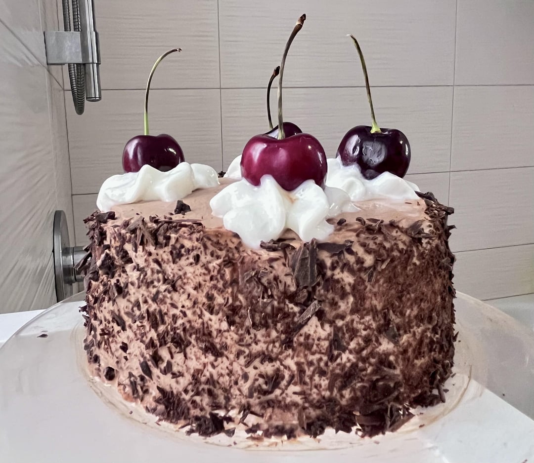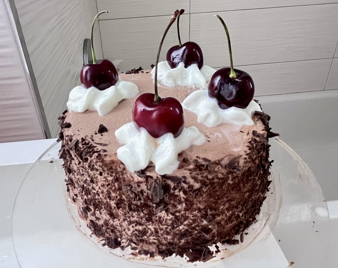 I made a mini Black Forest cake and carved a huge watermelon since it’s going to be very hot today (ignore the background it was midnight and the bathroom was the only place with good lighting)