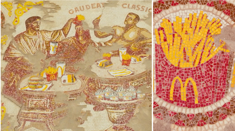 In a bold bit of trolling dressed up as cultural commentary, the fast food giant unveiled a fake ancient Roman mosaic in the Galleria Alberto Sordi that features toga-clad figures feasting on fries and Big Macs.