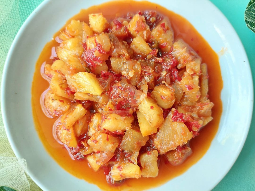 Check out the recipe here : https://peakd.com/hive-180569/@nurfay/traditional-sambal-pineapple-sambal-typical-of-palembang