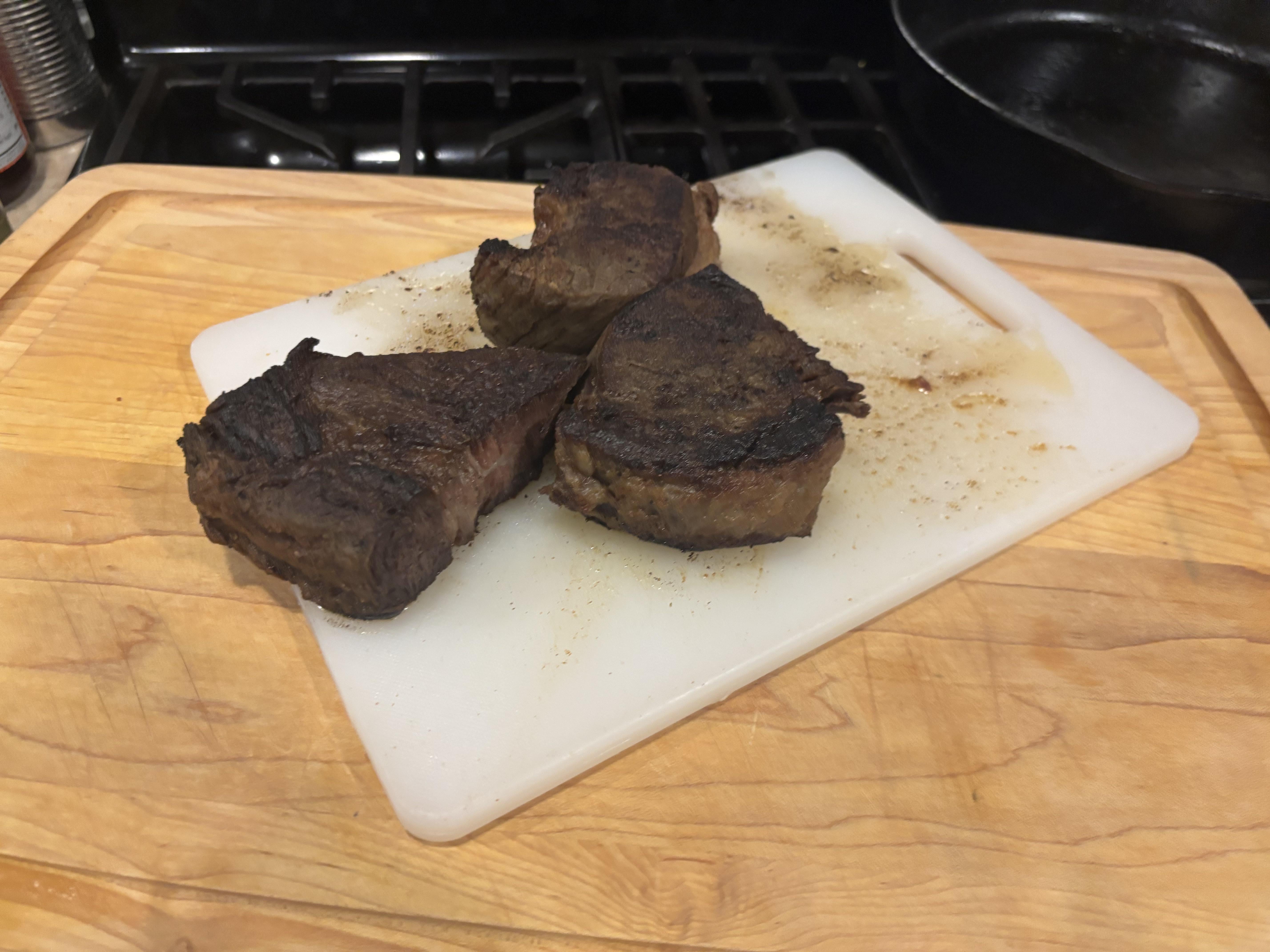 When I reached into the bag to remove it at the end, the meat did not feel nearly as soft as I expected. I took a bite before searing it, and immediately looked around for steak knives.