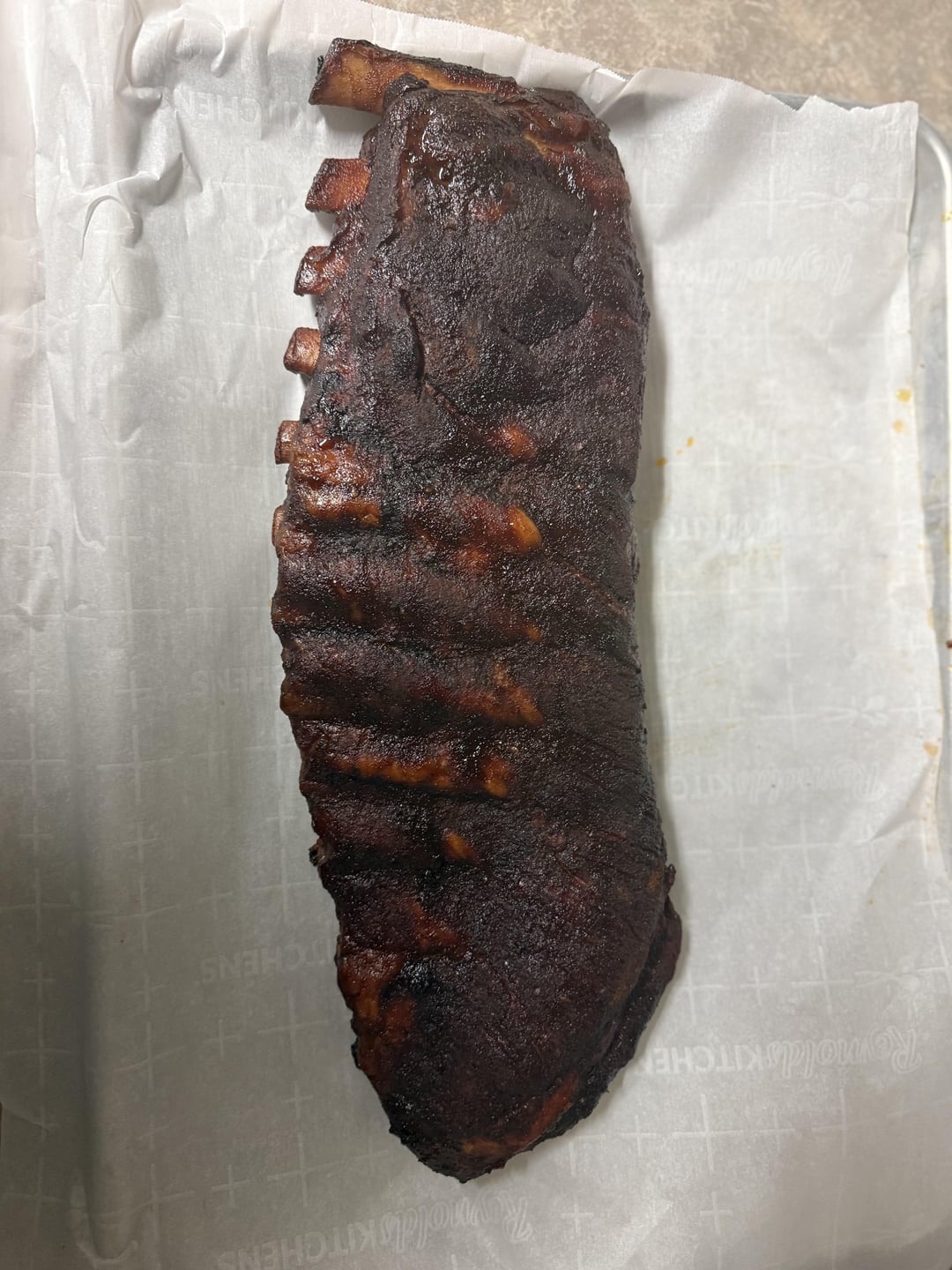 3-2-1 ribs. 225 for 3, wrap in foil with butter honey and brown sugar back in for 2, then out brush with bbq sauce and back for 1.
