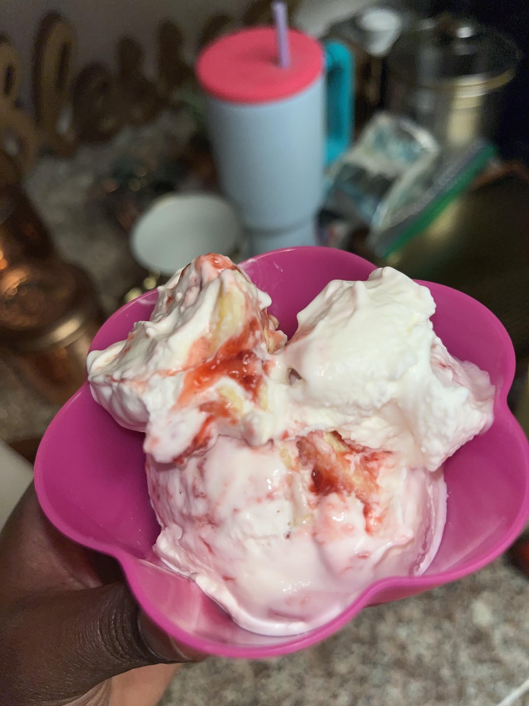 I made a strawberry cheesecake ice cream with chessmen cookies.