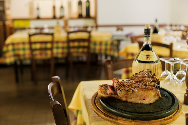 Here Giordano, the innkeeper, is a peculiar character. You can recognize him by his well-cut shirts and gruff look. But the real respect for the customer can be seen on the plate and on the quality. Today, the kitchen is equipped with the Josper, the oven most coveted by chefs in recent years. It has replaced the griddle, giving the Fiorentina steak a definite smoky flavour.