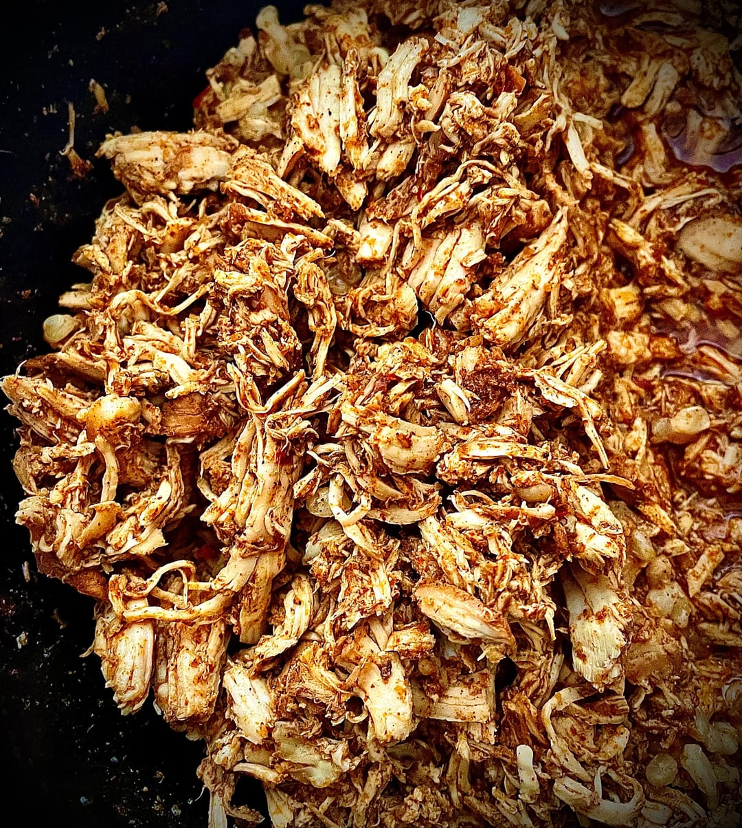 - Meal Prep Sunday in the slow cooker for 3 hours on High, then I shredded the cooked chicken.
