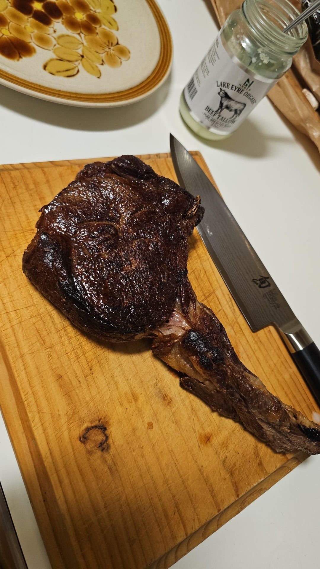 Would normally aim for a few more degrees on a ribeye but the fat was nicely rendered and the edges were at risk of overcooking so i pulled it early.